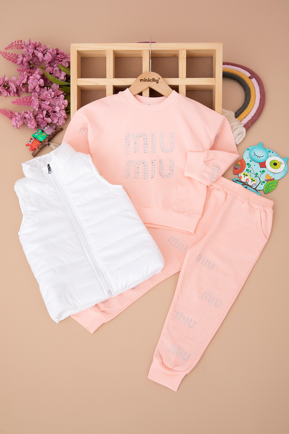 Kız Çocuk Miu Taş Baskılı Yelekli Takım - 40665 (2-5 Yaş)