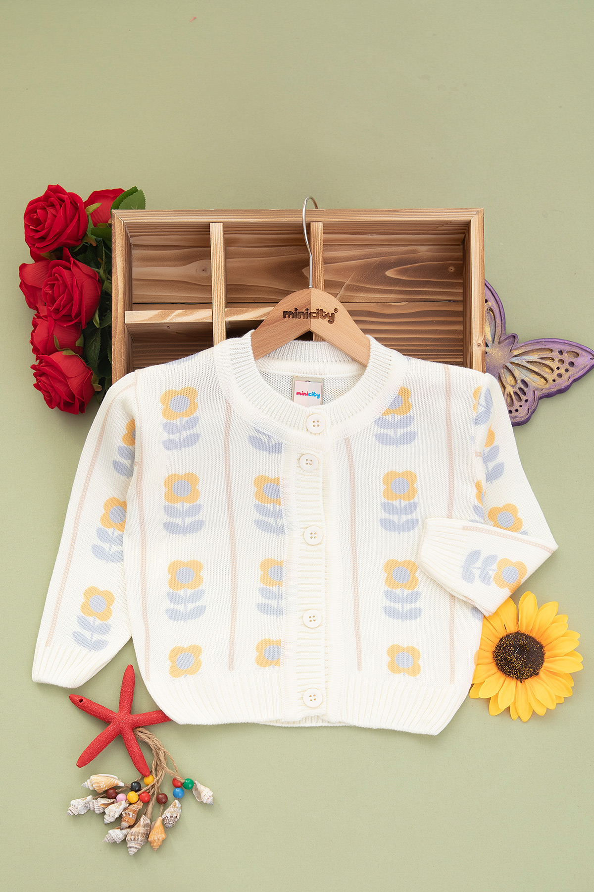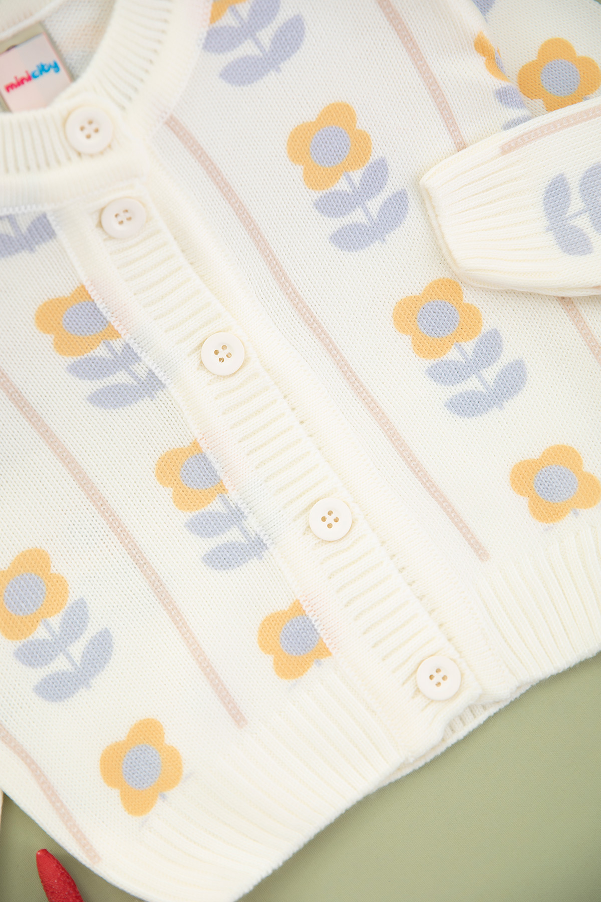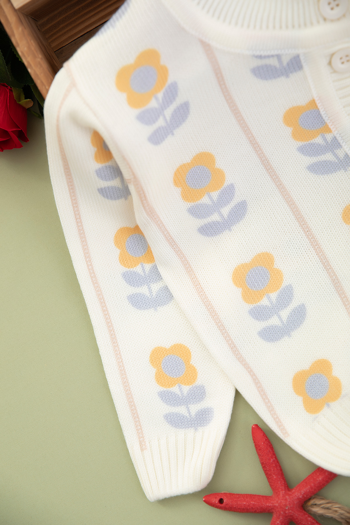 Kız Çocuk Mor Papatya Baskılı Triko Hırka (2-8 Yaş)