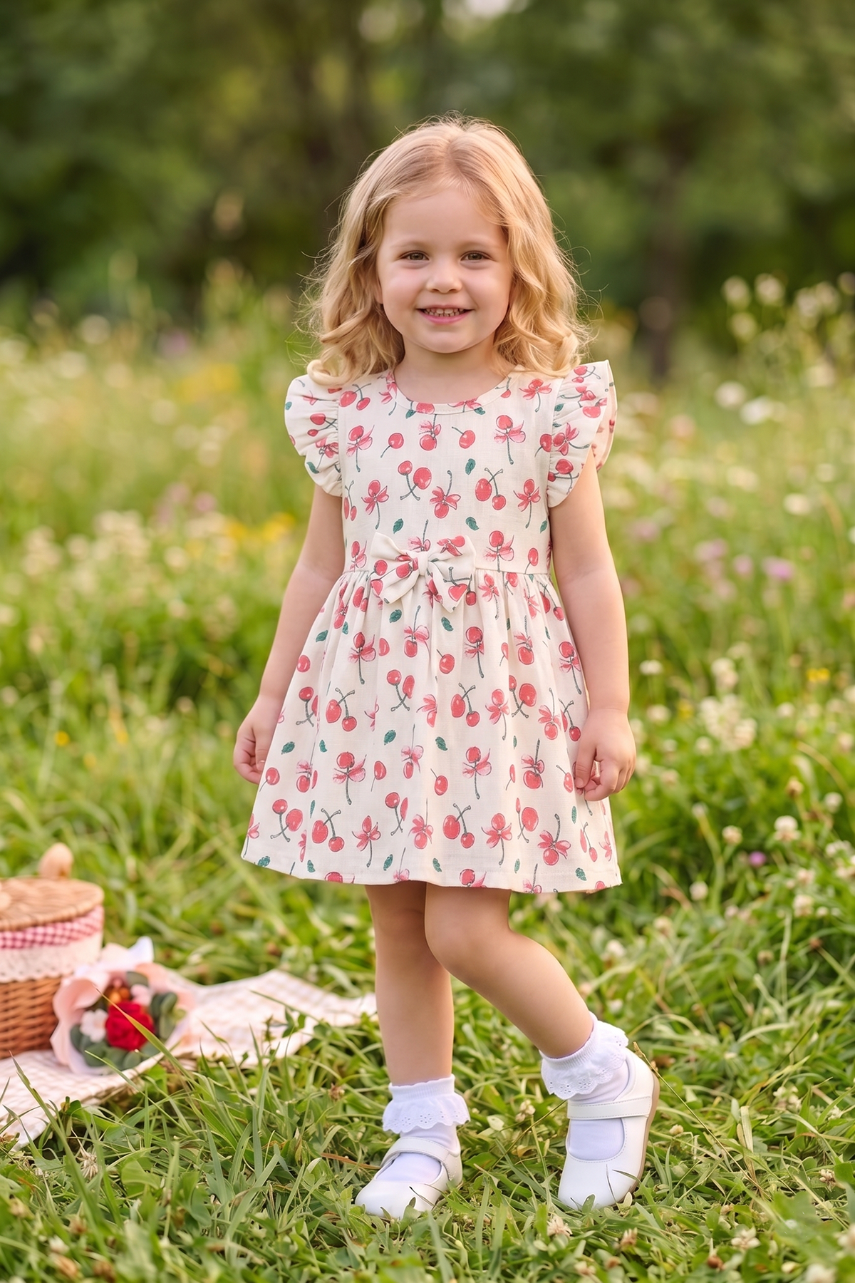 Kız Çocuk Müslin Fiyonklu Elbise - 2332