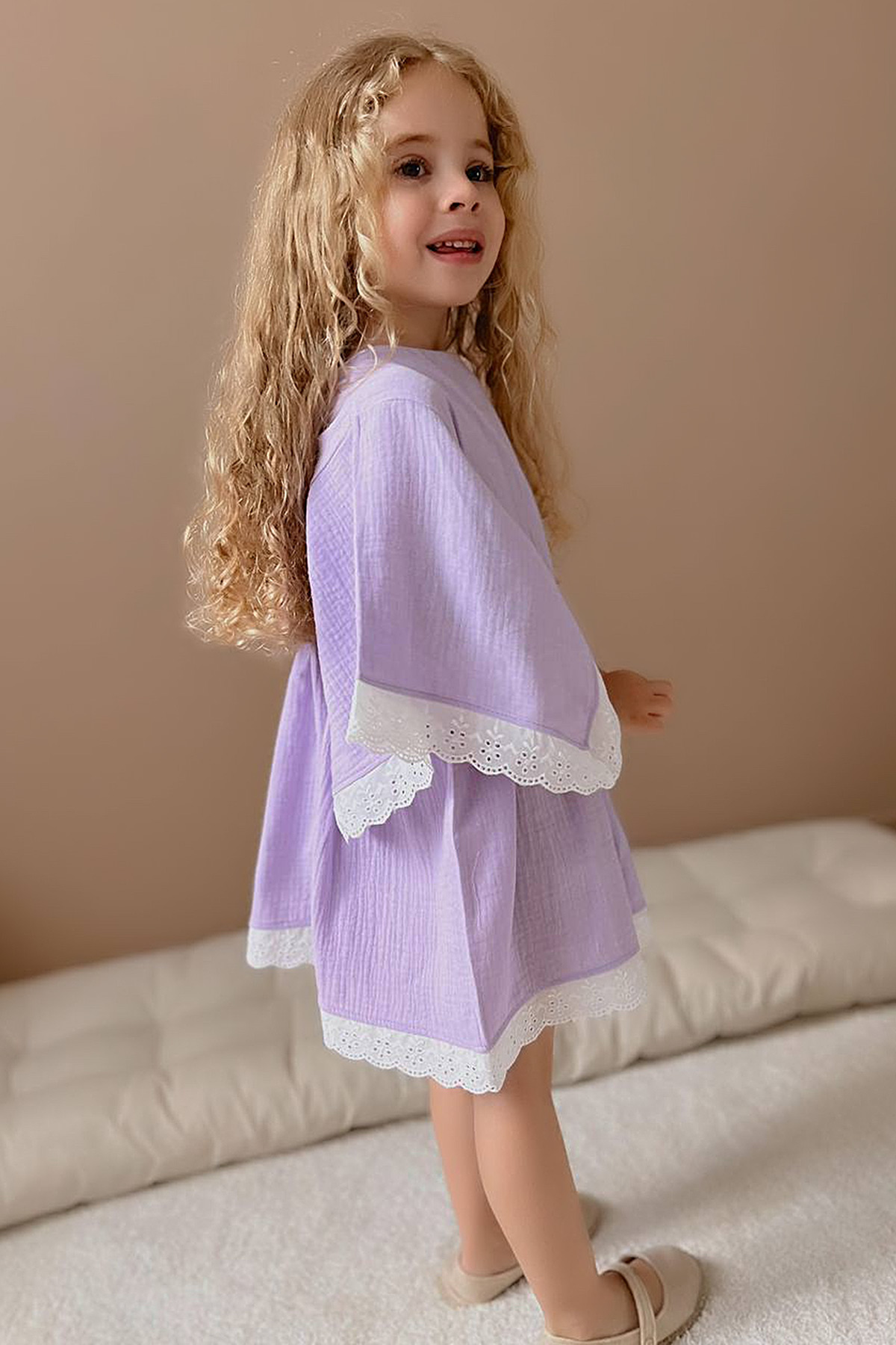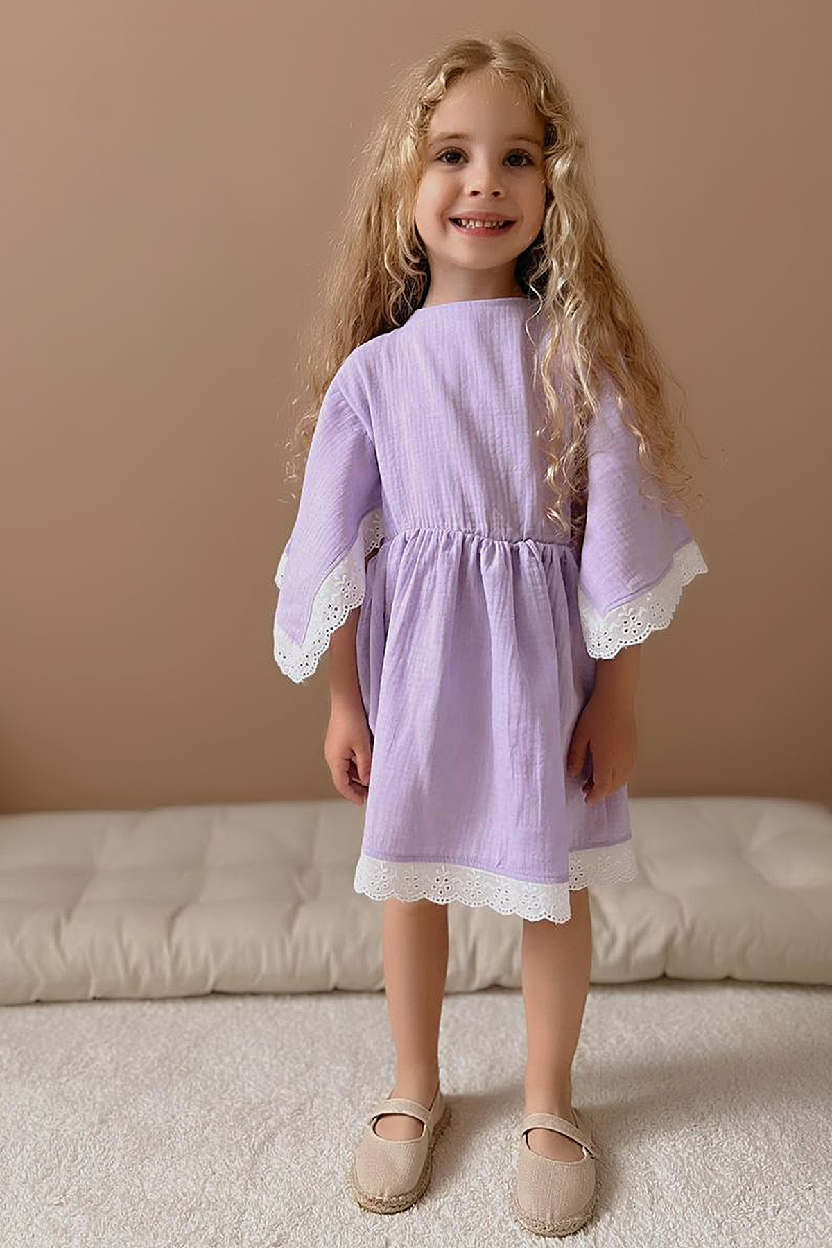 Kız Çocuk Müslüm Yarasa Kol Elbise - 2397 (3-10 Yaş)