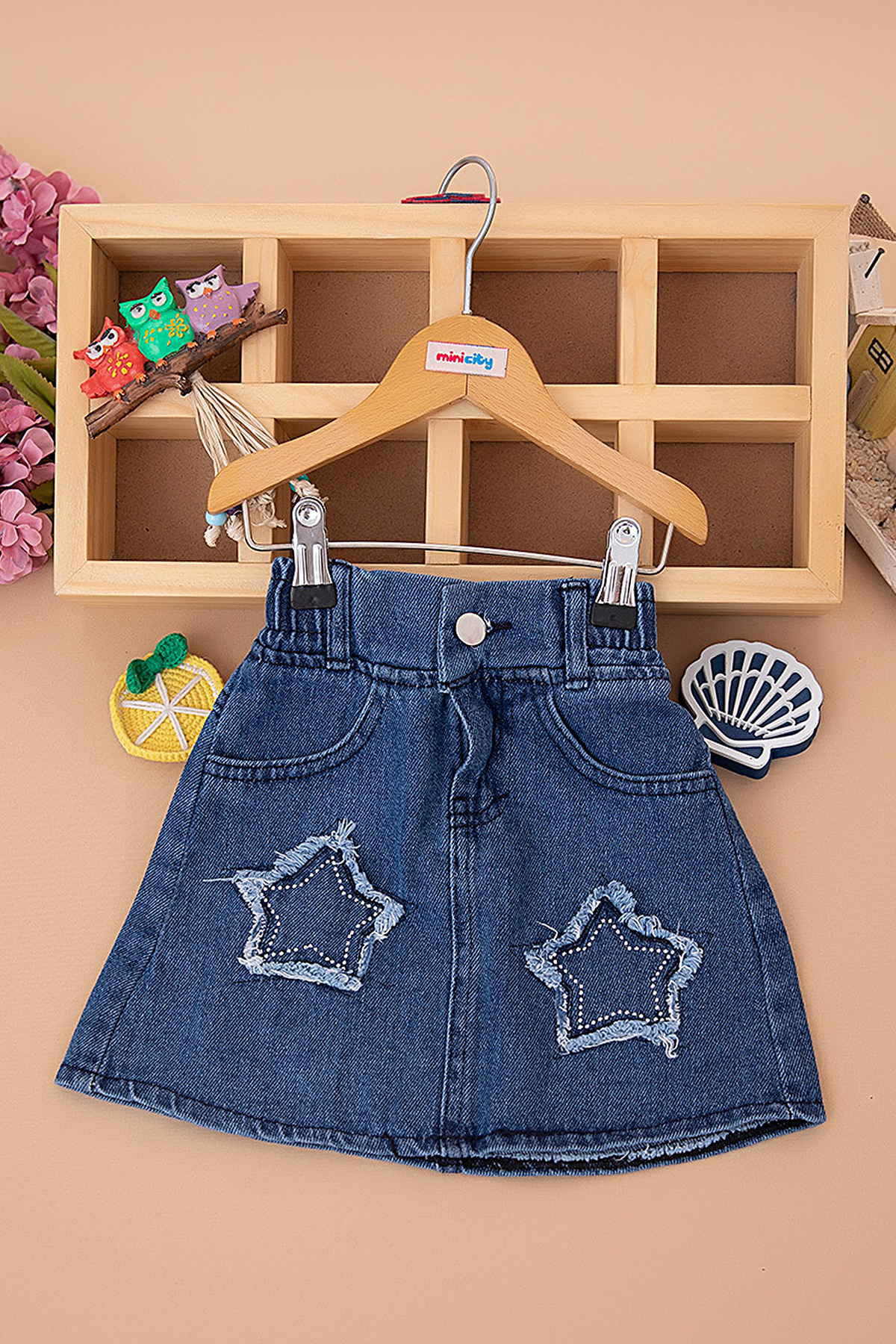 Kız Çocuk Nadia Yıldız Nakışlı Kot Etek (8-12 Yaş)