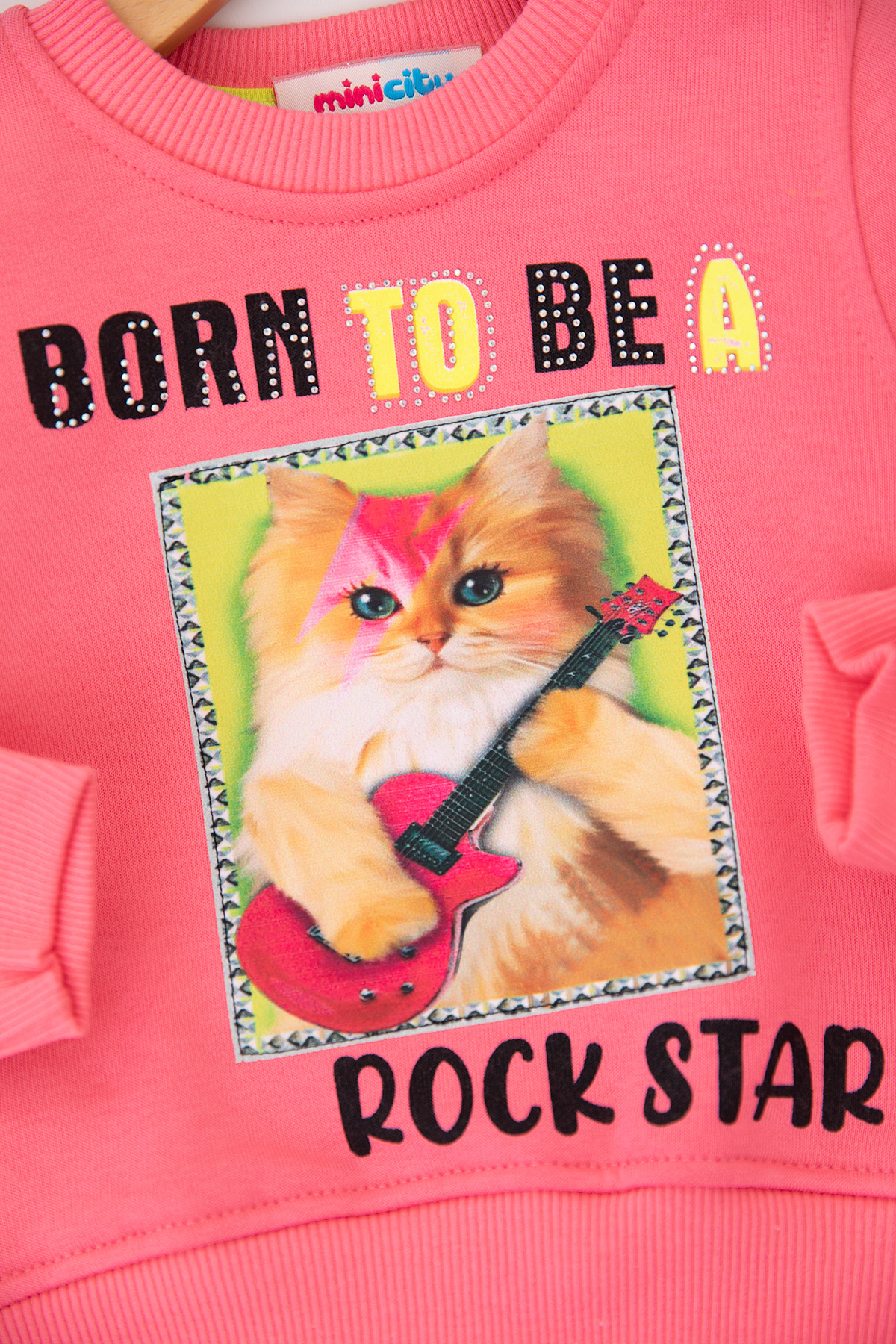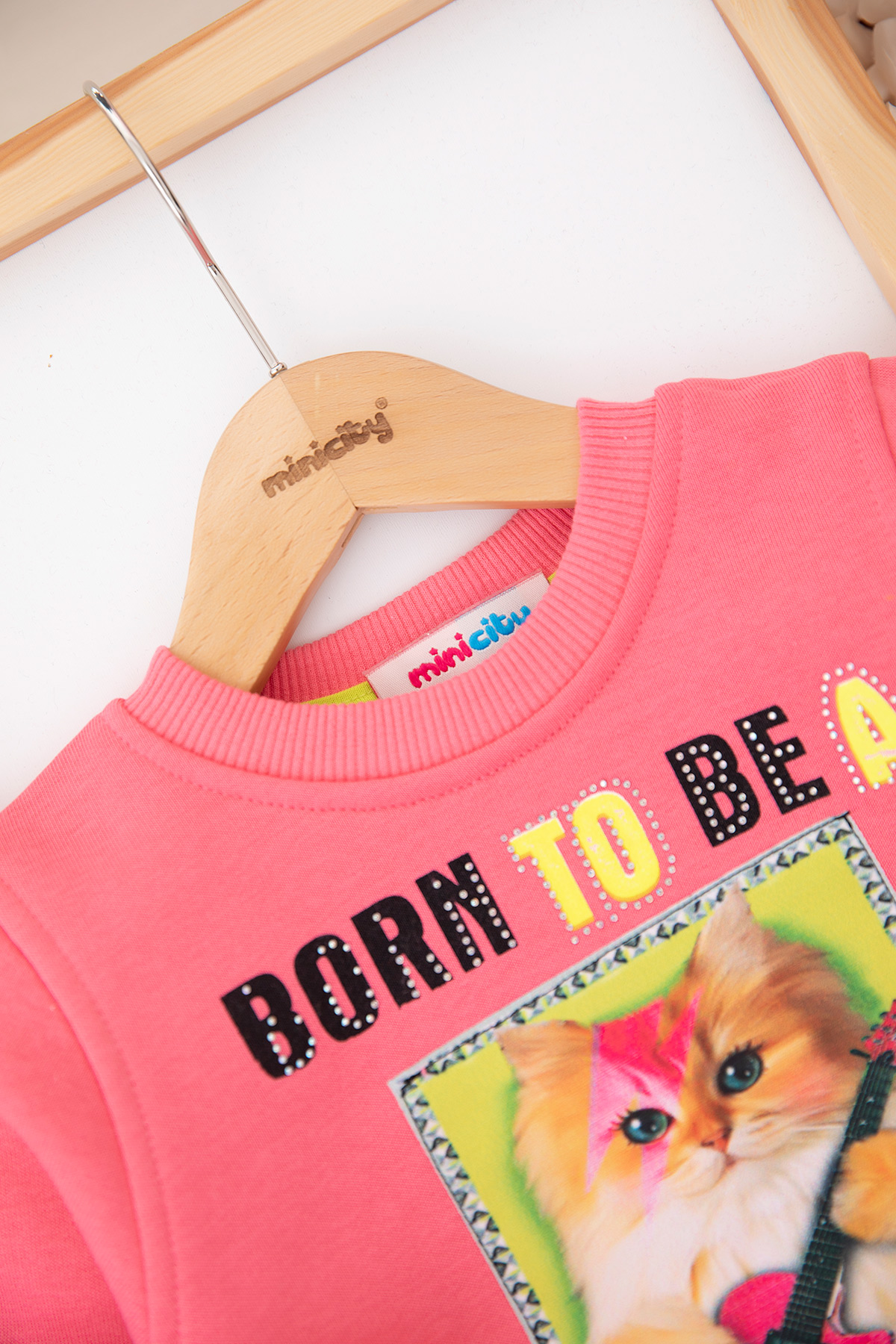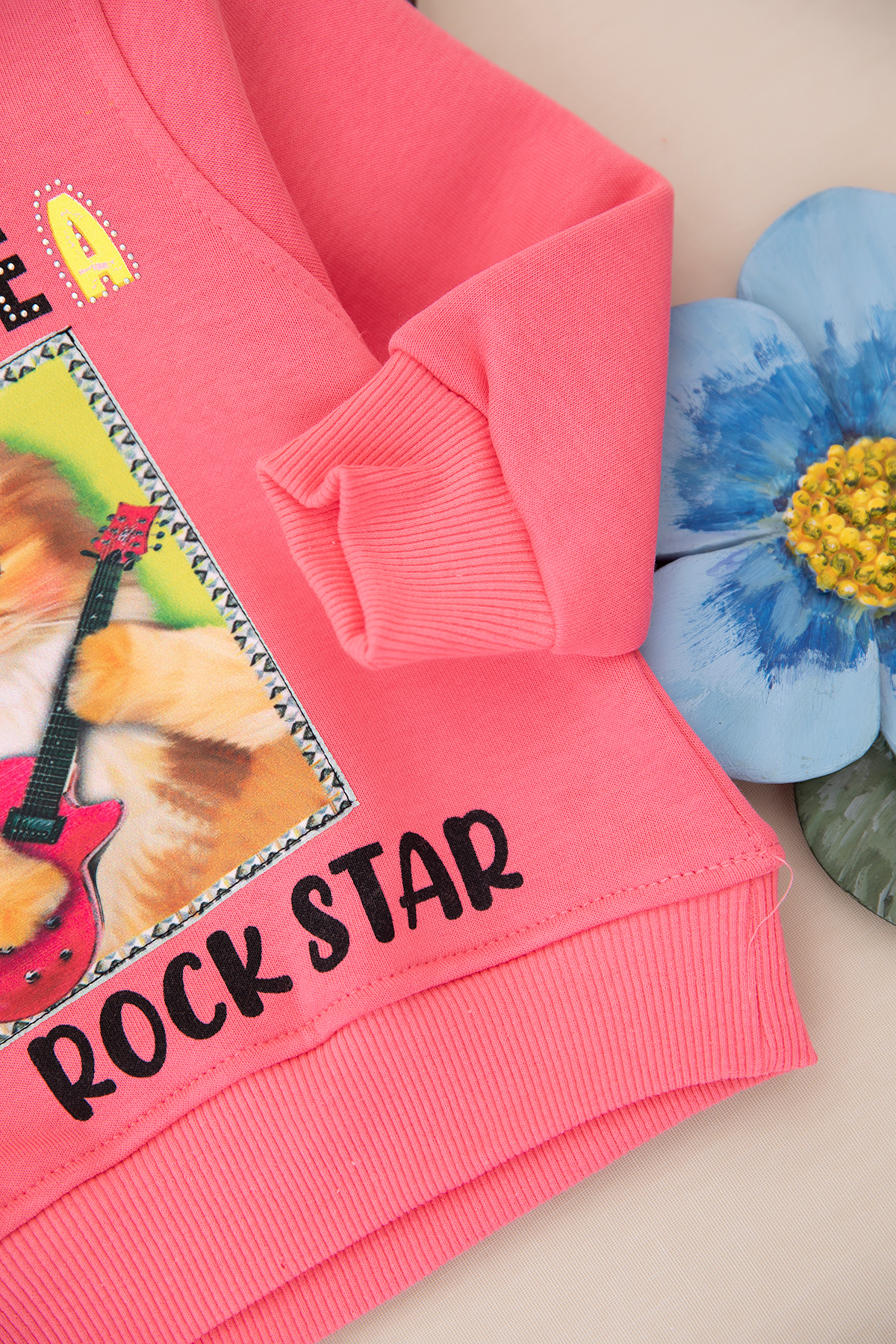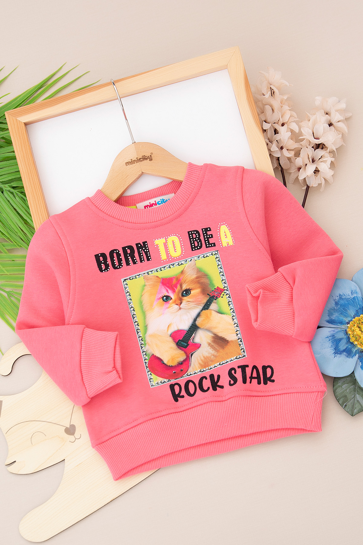 Kız Çocuk Nakışlı Baskılı Üçip Sweat