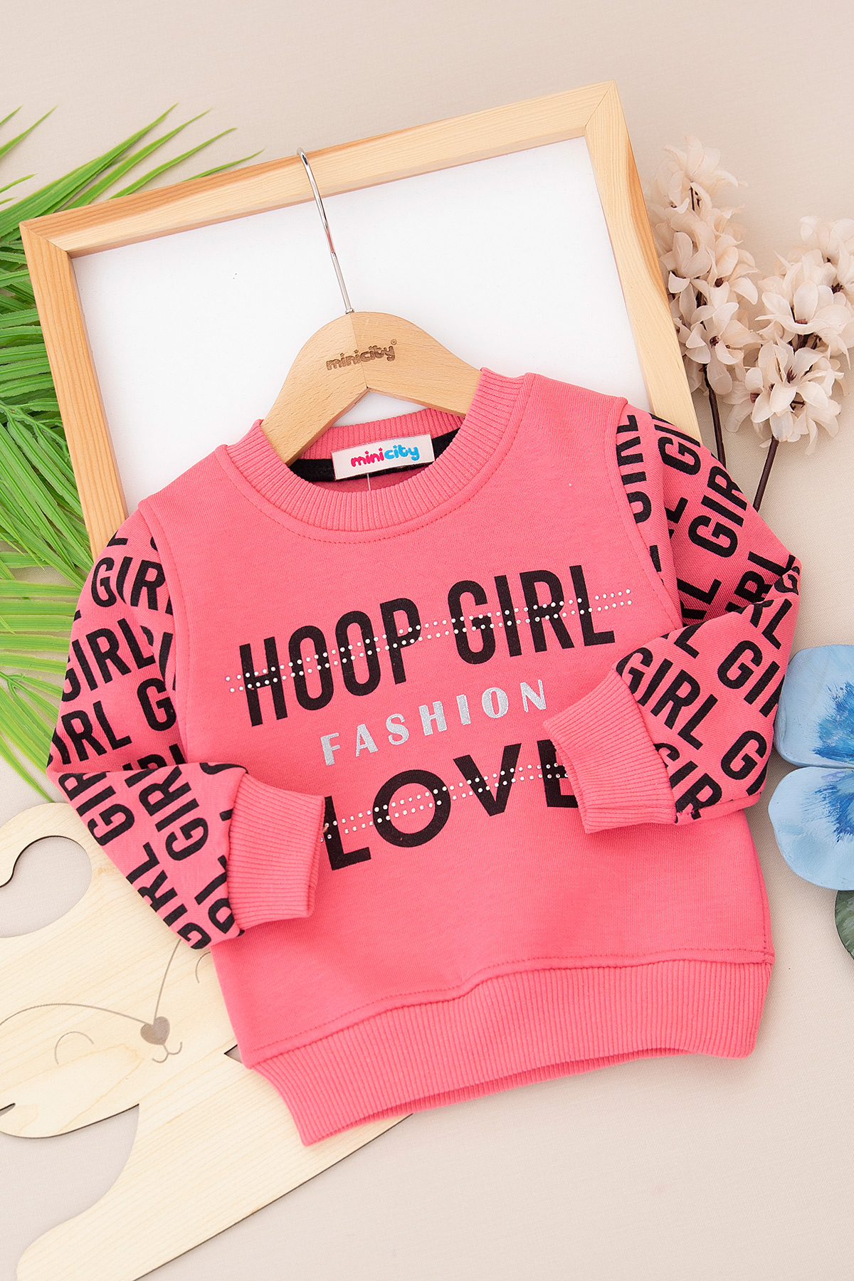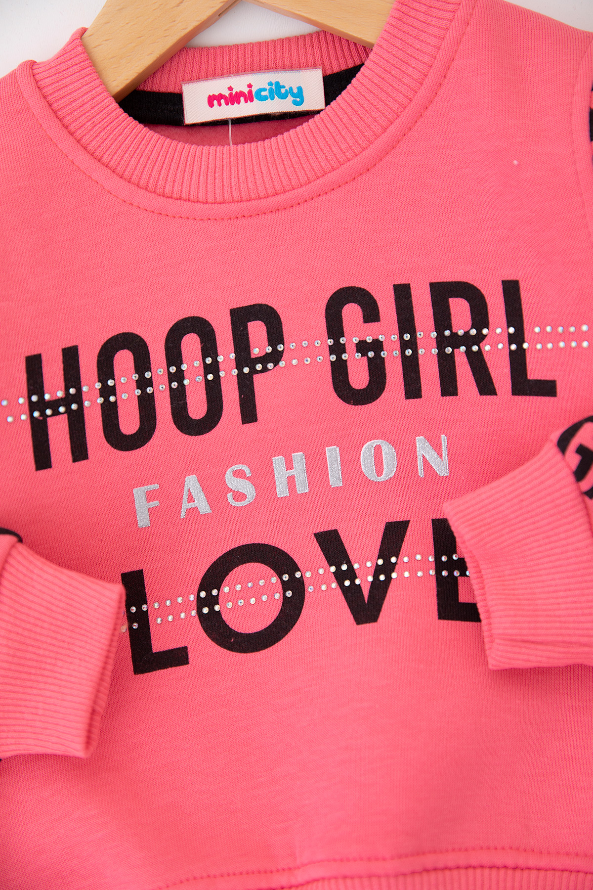 Kız Çocuk Nakışlı Baskılı Üçip Sweat