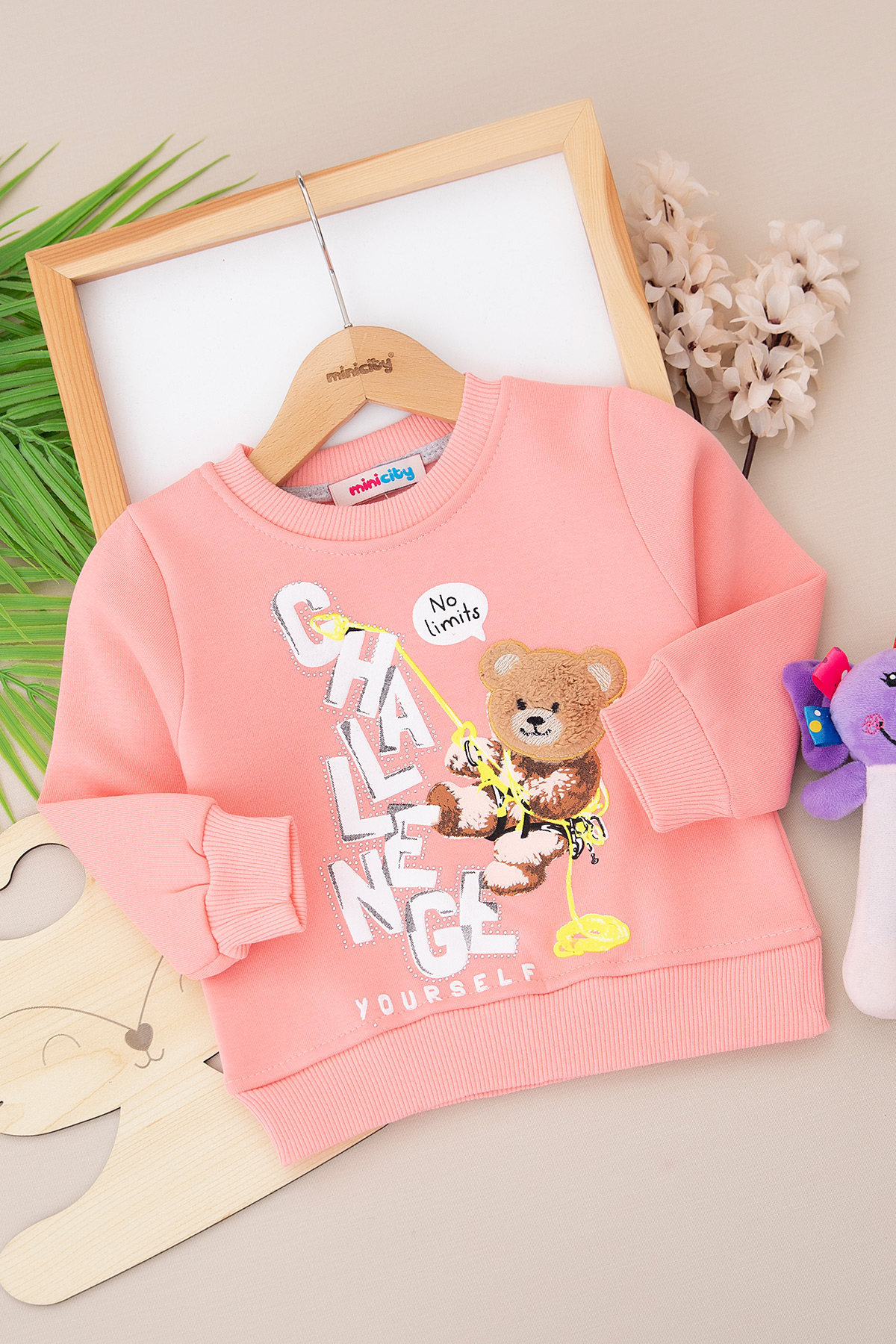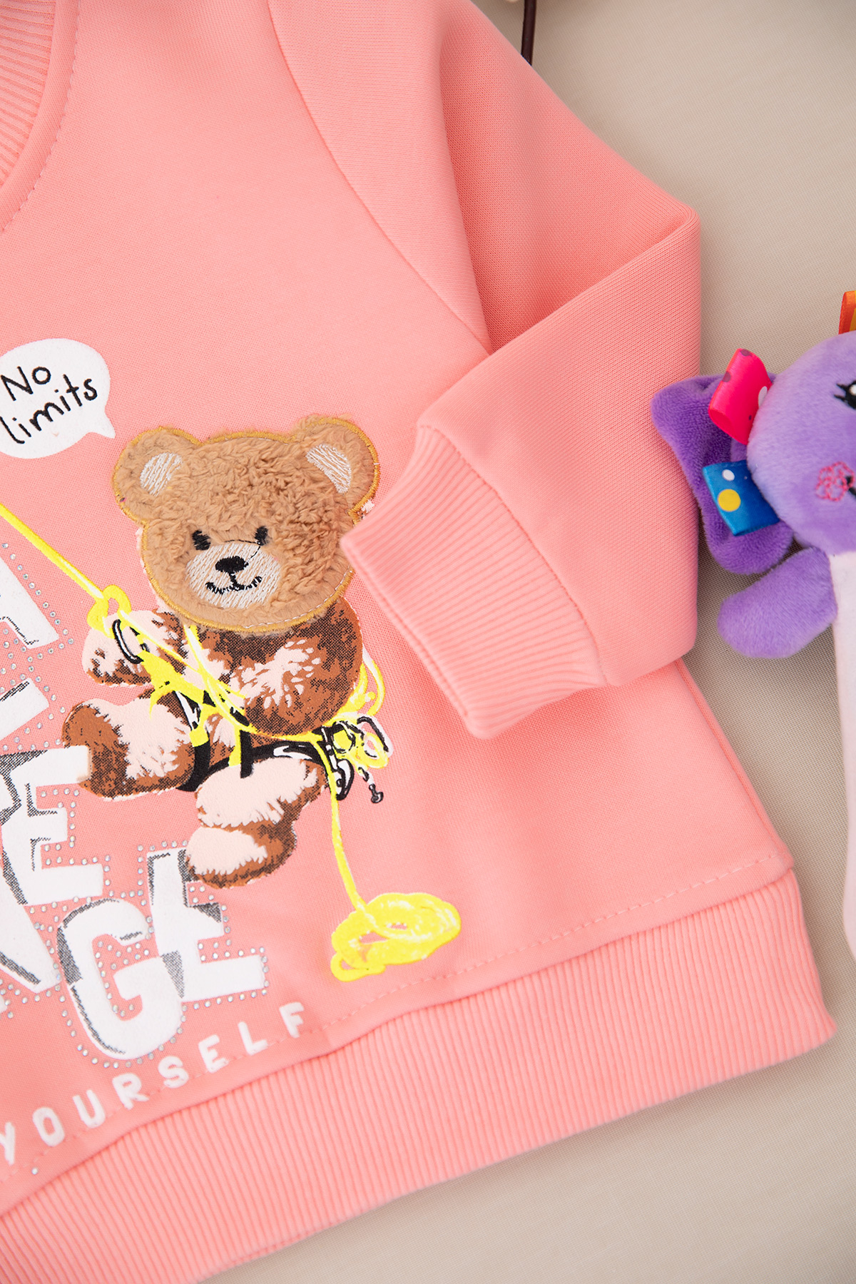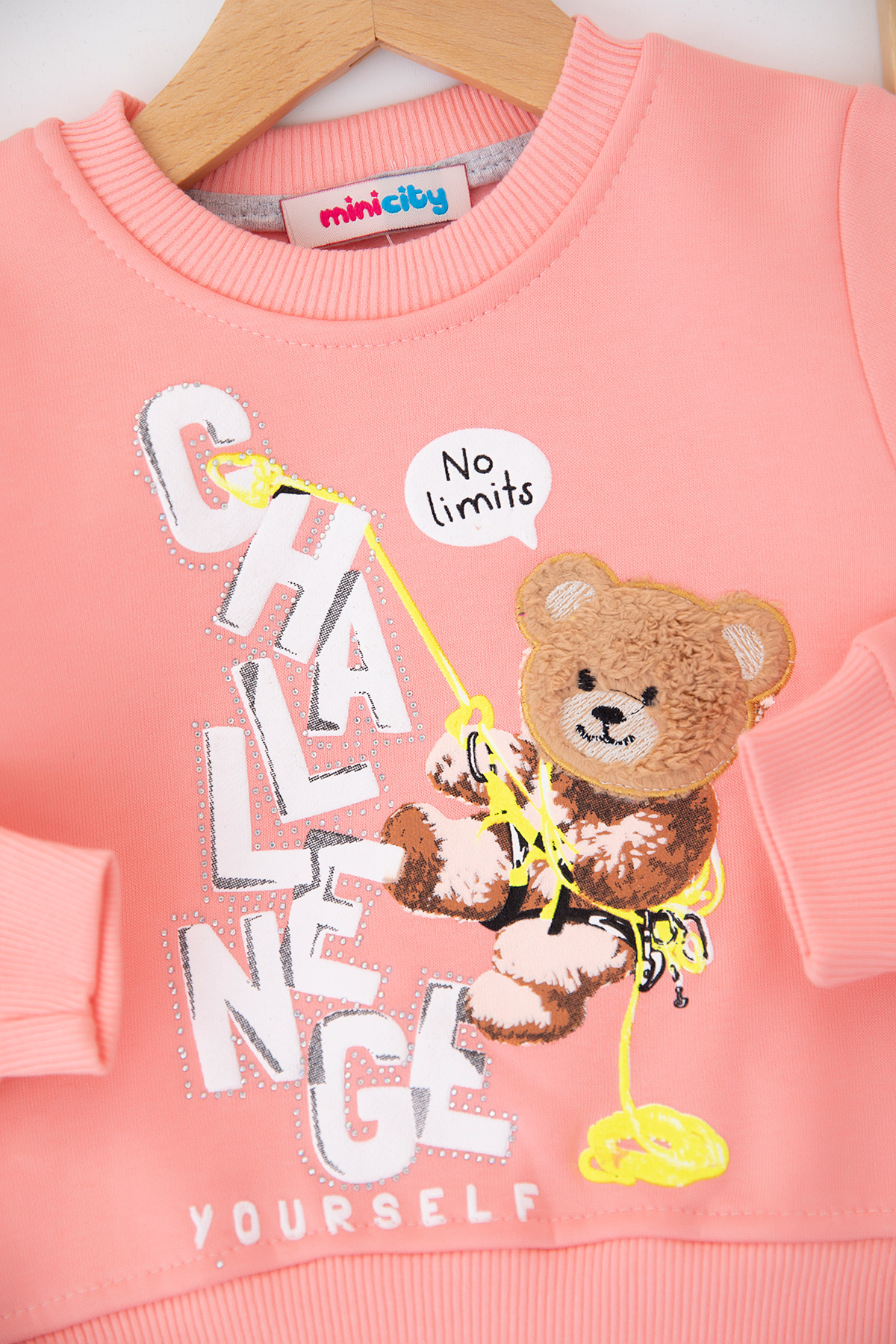 Kız Çocuk Nakışlı Baskılı Üçip Sweat