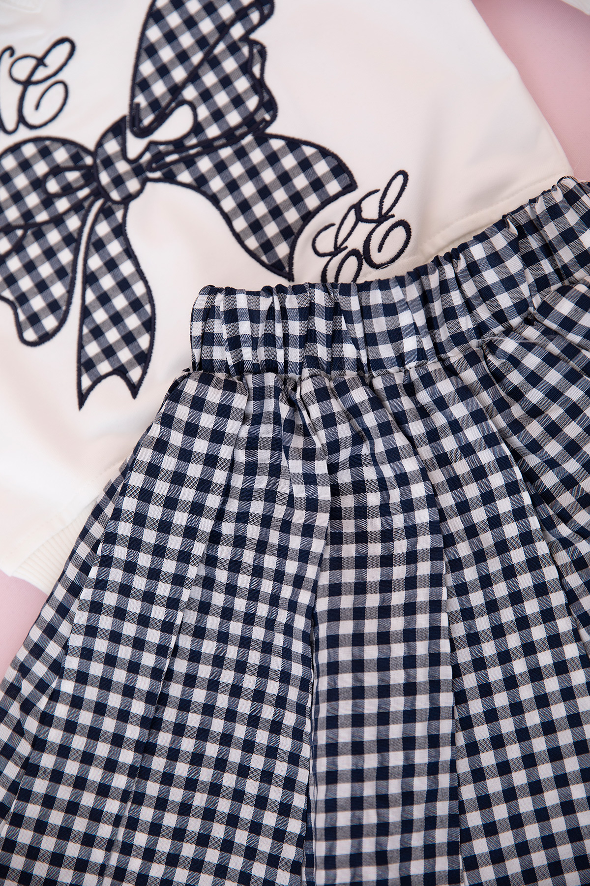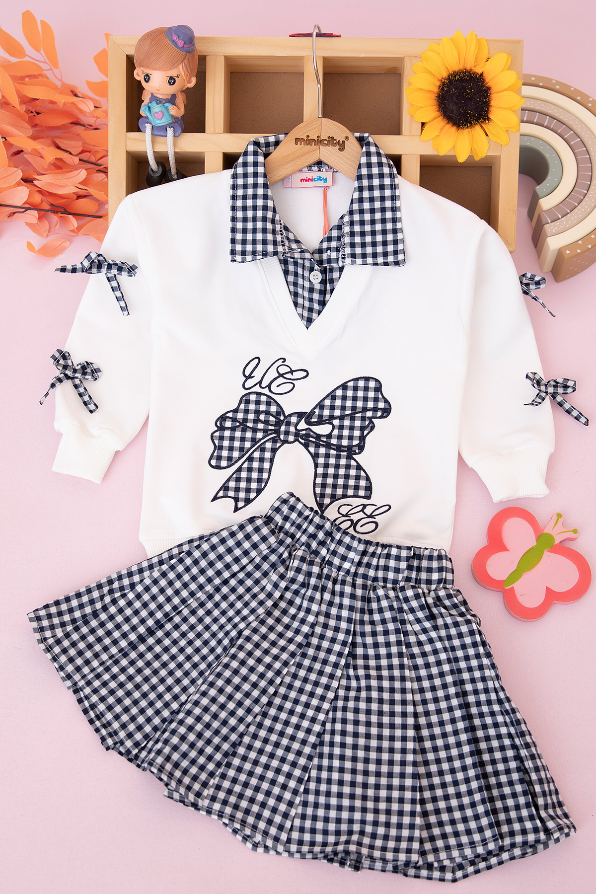 Kız Çocuk Nakışlı Ekose Etekli Takım - 2-10 Yaş