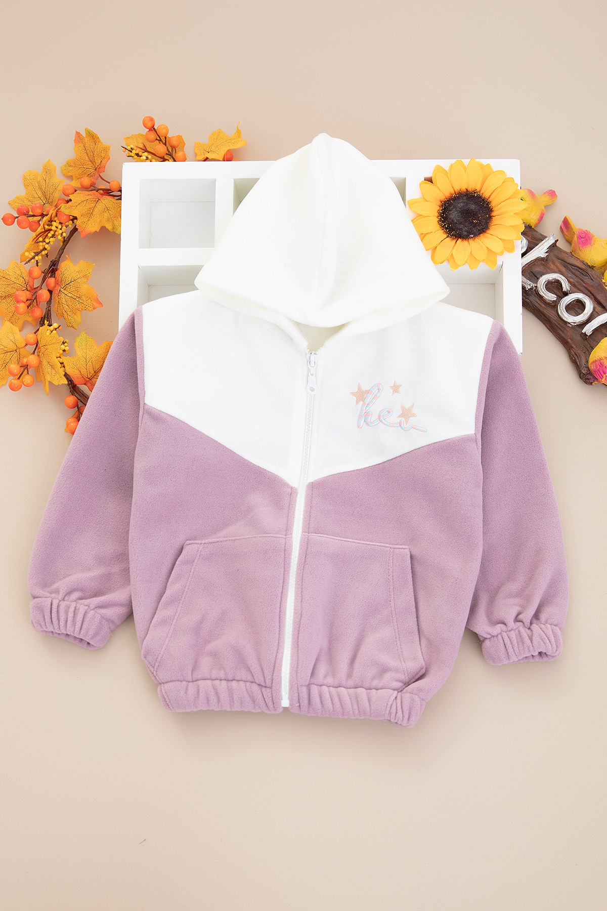 Kız Çocuk Nakışlı Fermuarlı Polar Hırka - 9011 (3-12 Yaş)