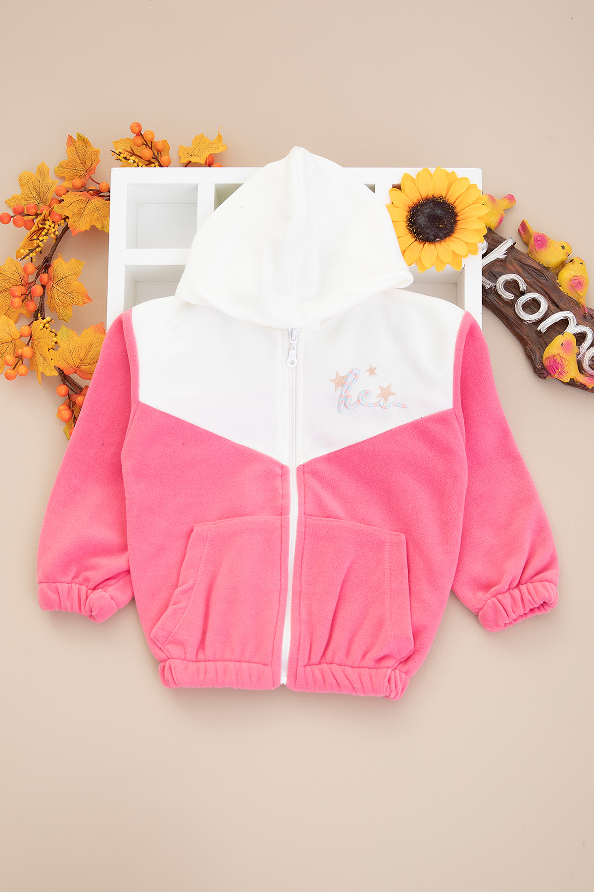 Kız Çocuk Nakışlı Fermuarlı Polar Hırka - 9011 (3-12 Yaş)