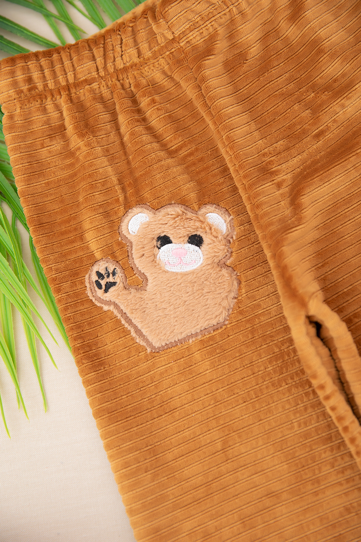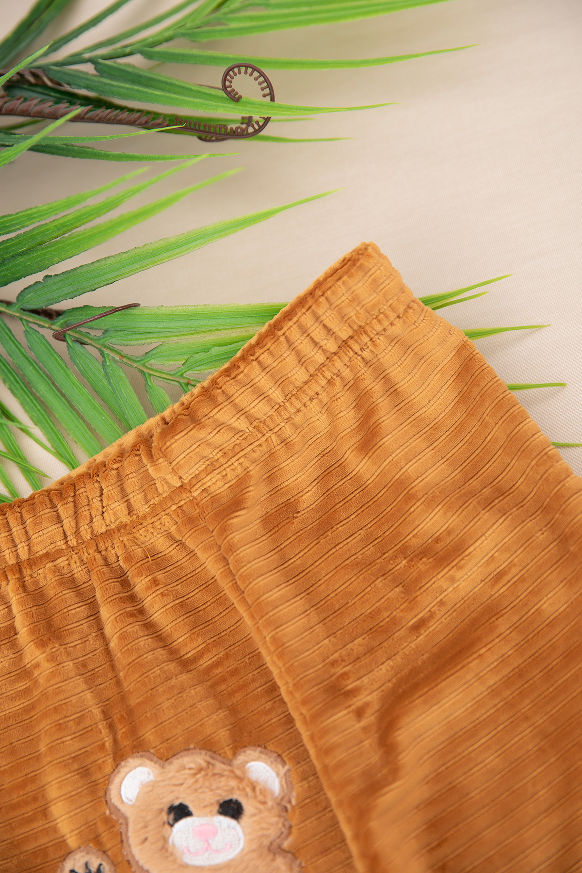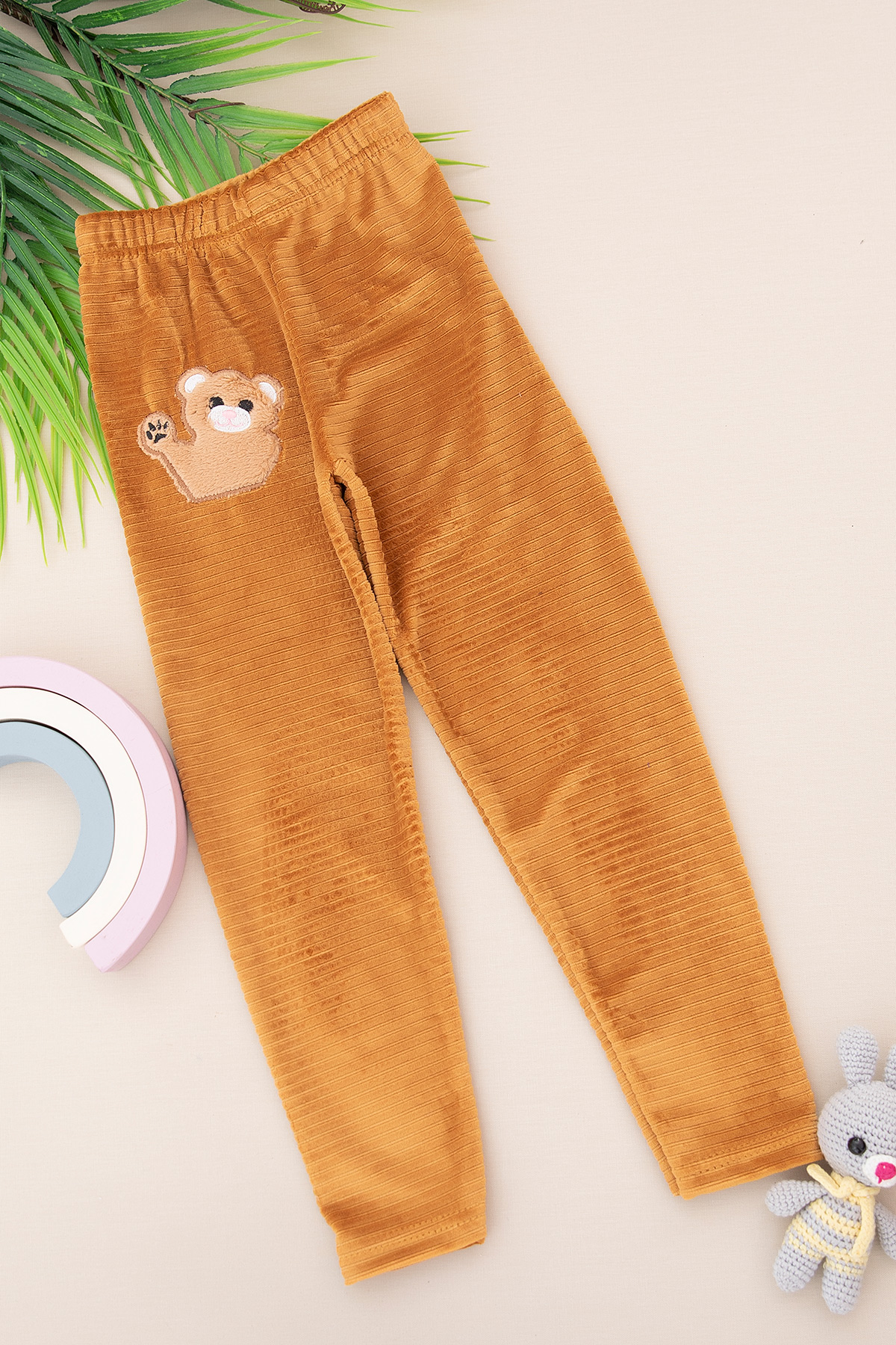 Kız Çocuk Nakışlı Fitilli Kadife Tayt - 25546 (7-11 Yaş)