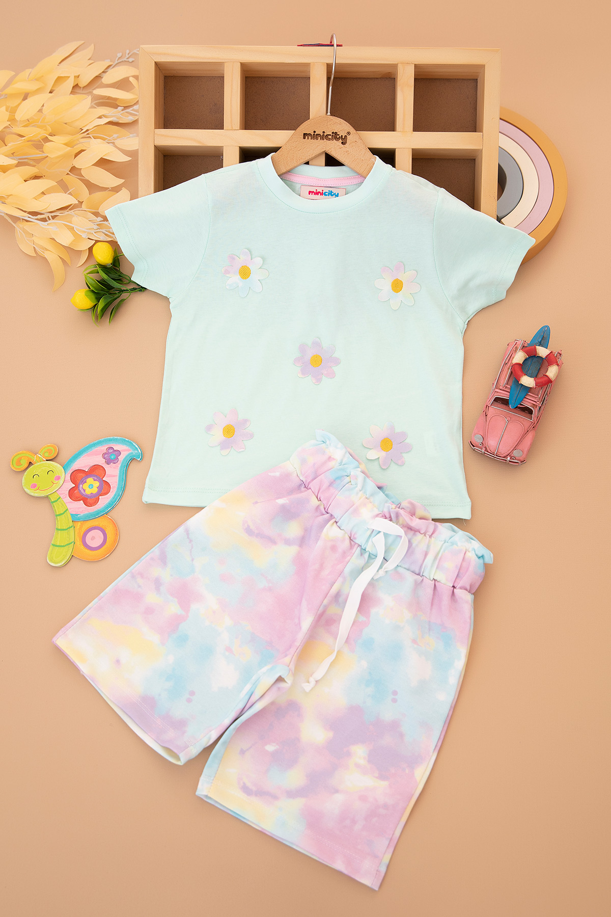 Kız Çocuk Nakışlı Kısa Kol Şortlu Takım - (2-7 Yaş)