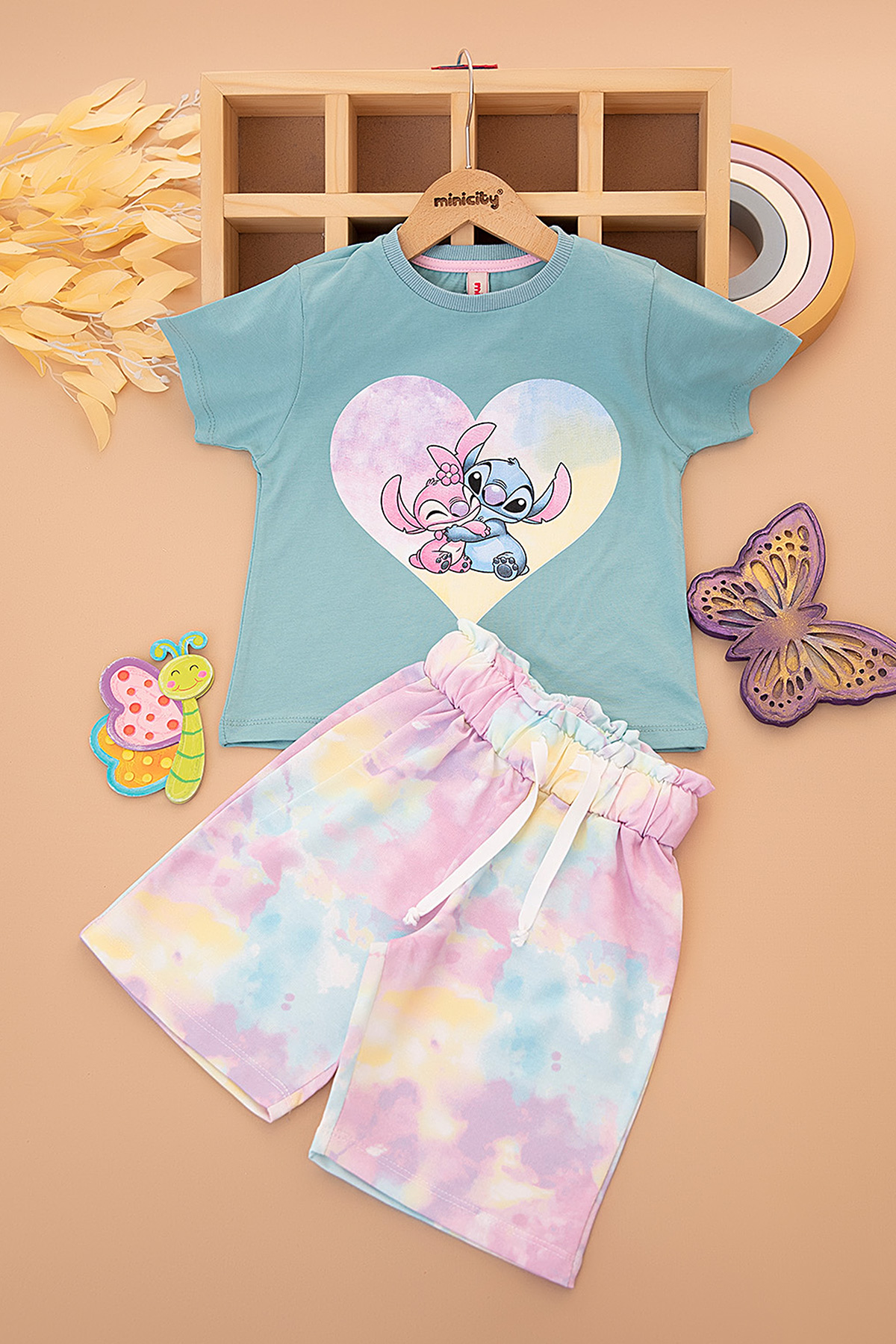 Kız Çocuk Nakışlı Kısa Kol Şortlu Takım (2-7 Yaş)