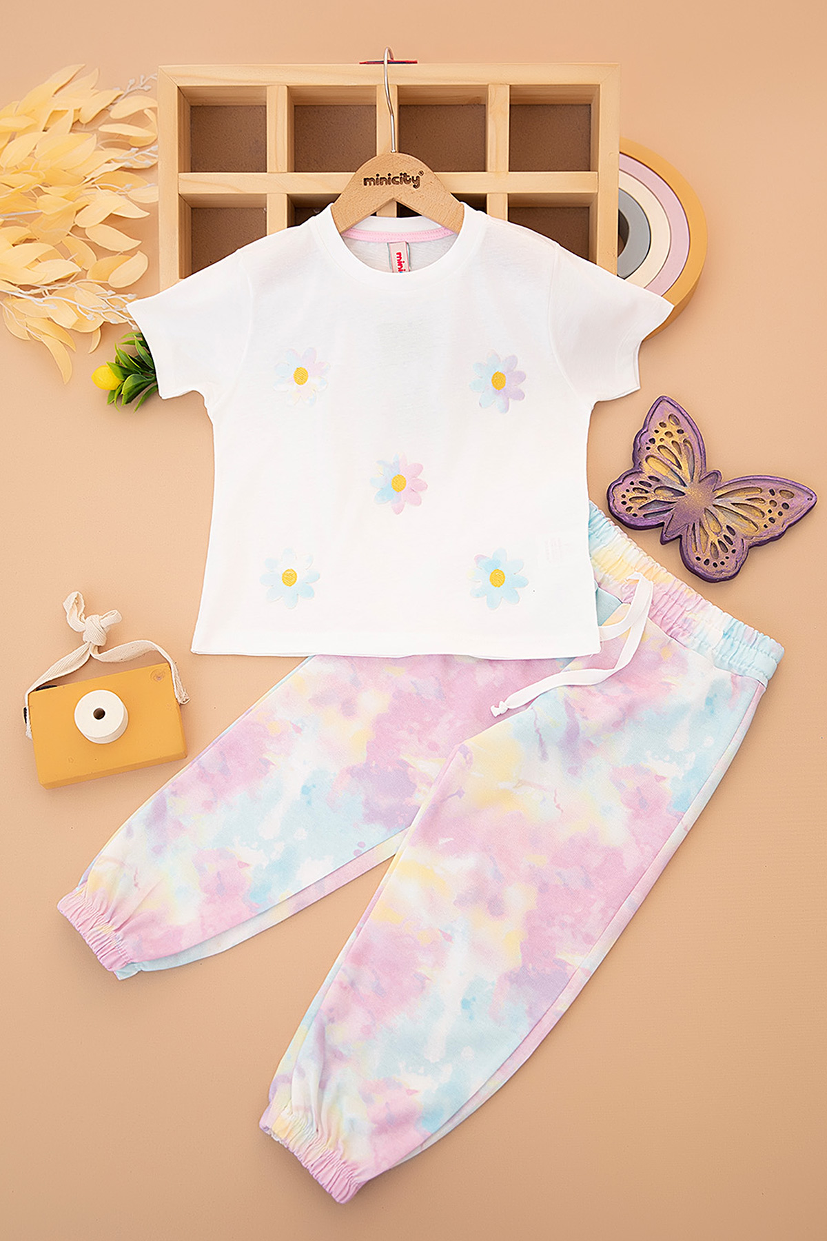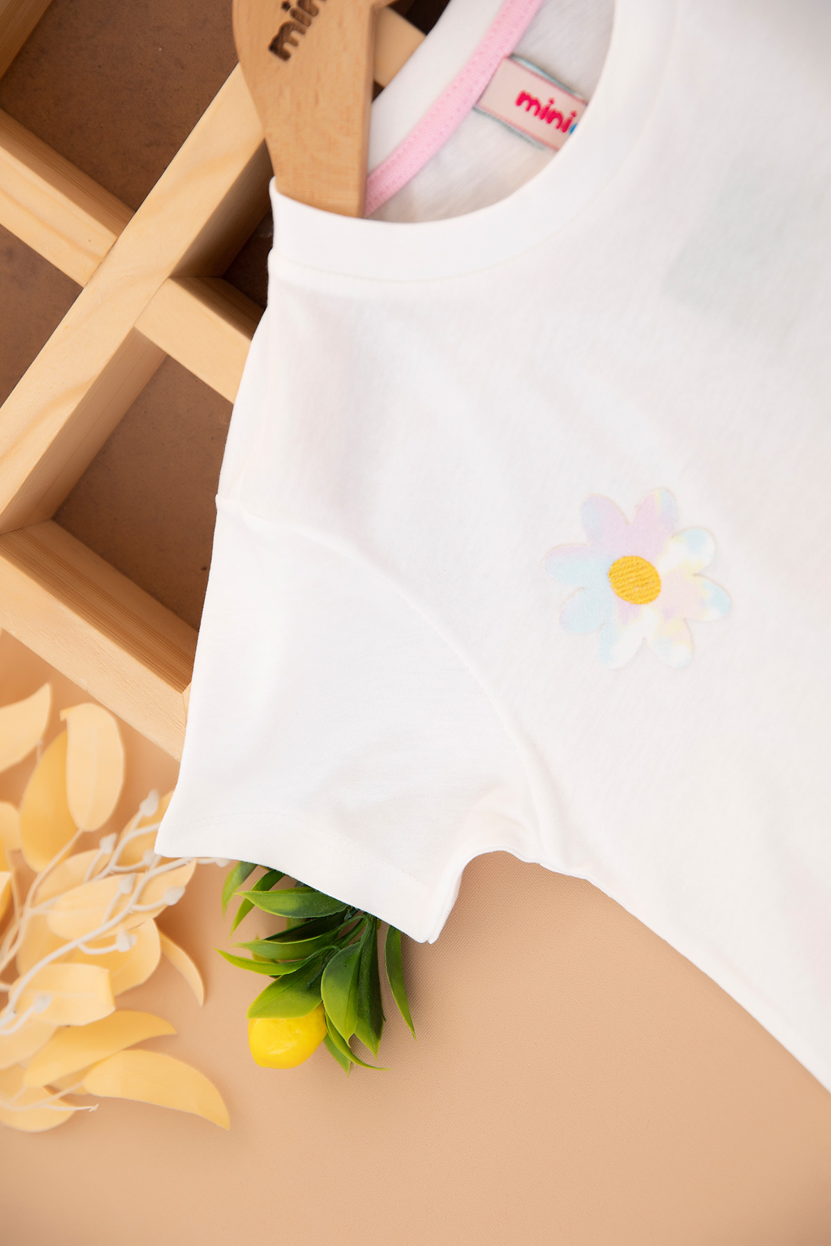 Kız Çocuk Nakışlı Kısa Kol Taytlı Takım - (2-7 Yaş)