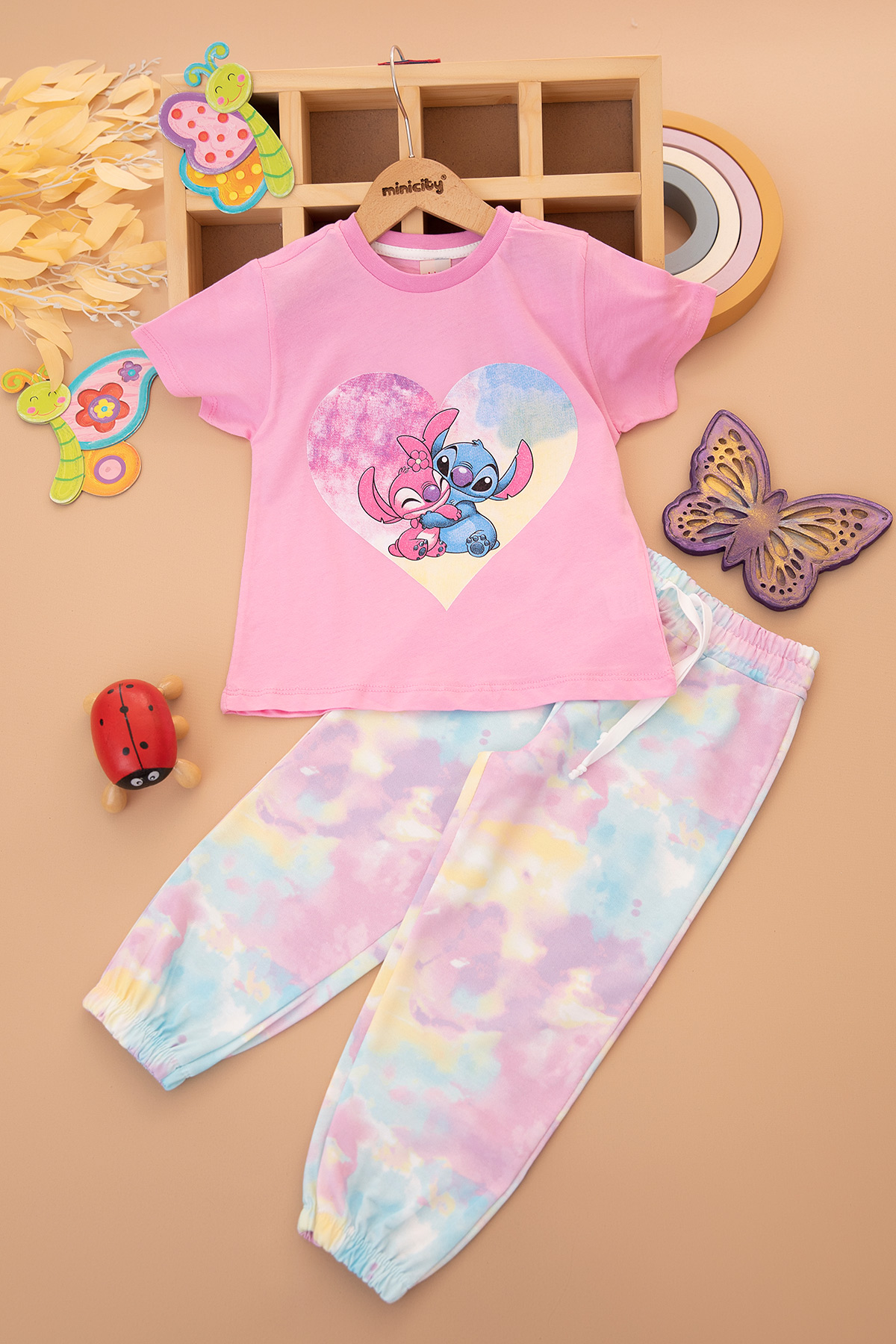 Kız Çocuk Nakışlı Kısa Kol Taytlı Takım (2-7 Yaş)