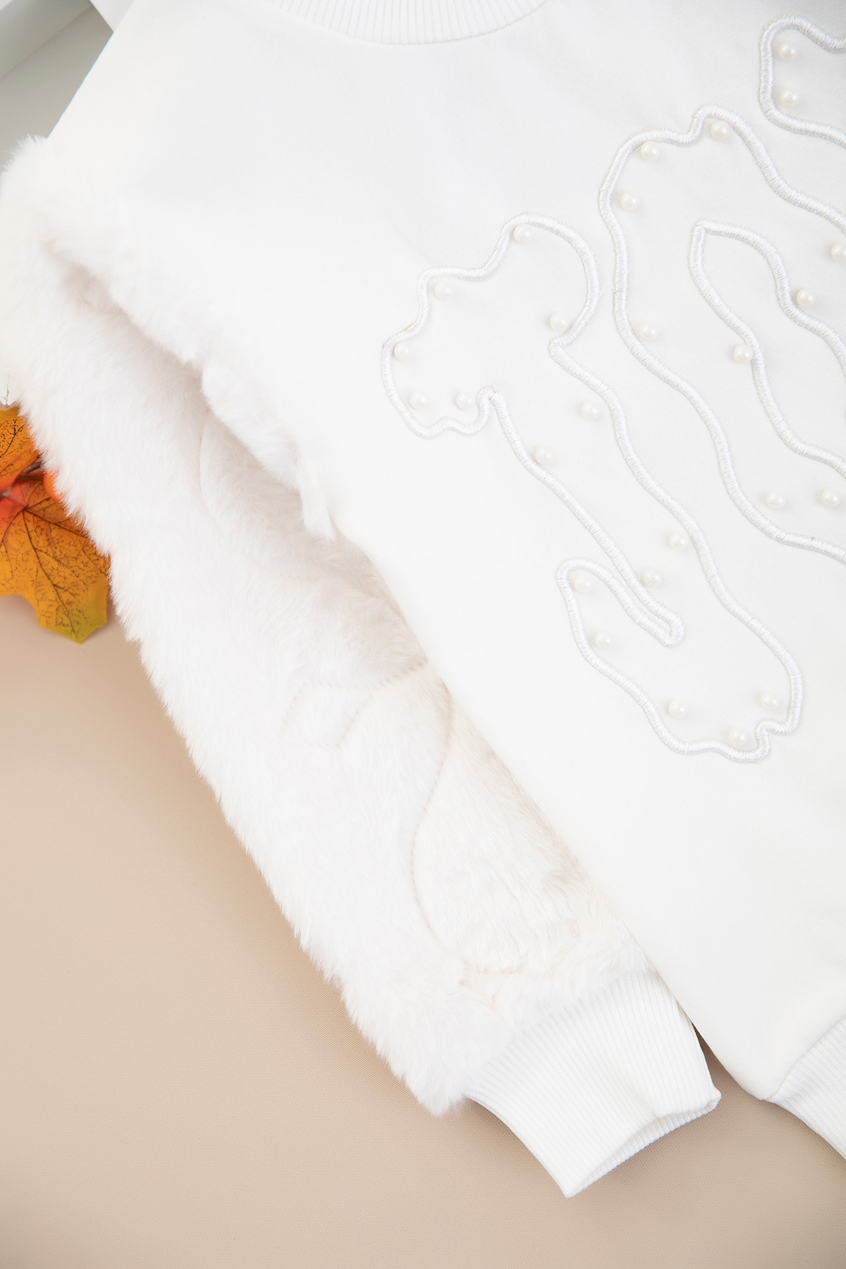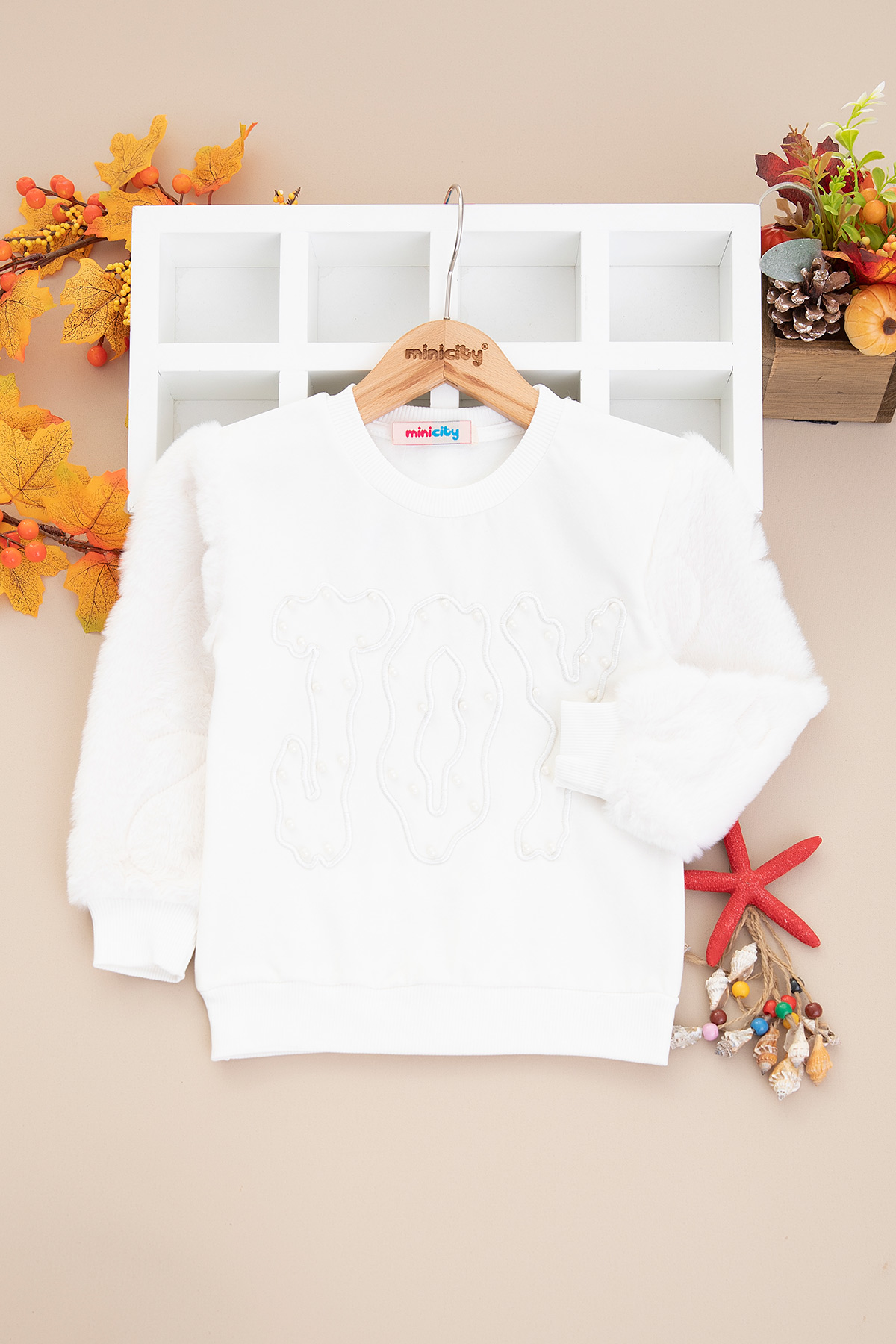 Kız Çocuk Nakışlı Kol Peluşlu Sweat - 7625 (9-12 Yaş)