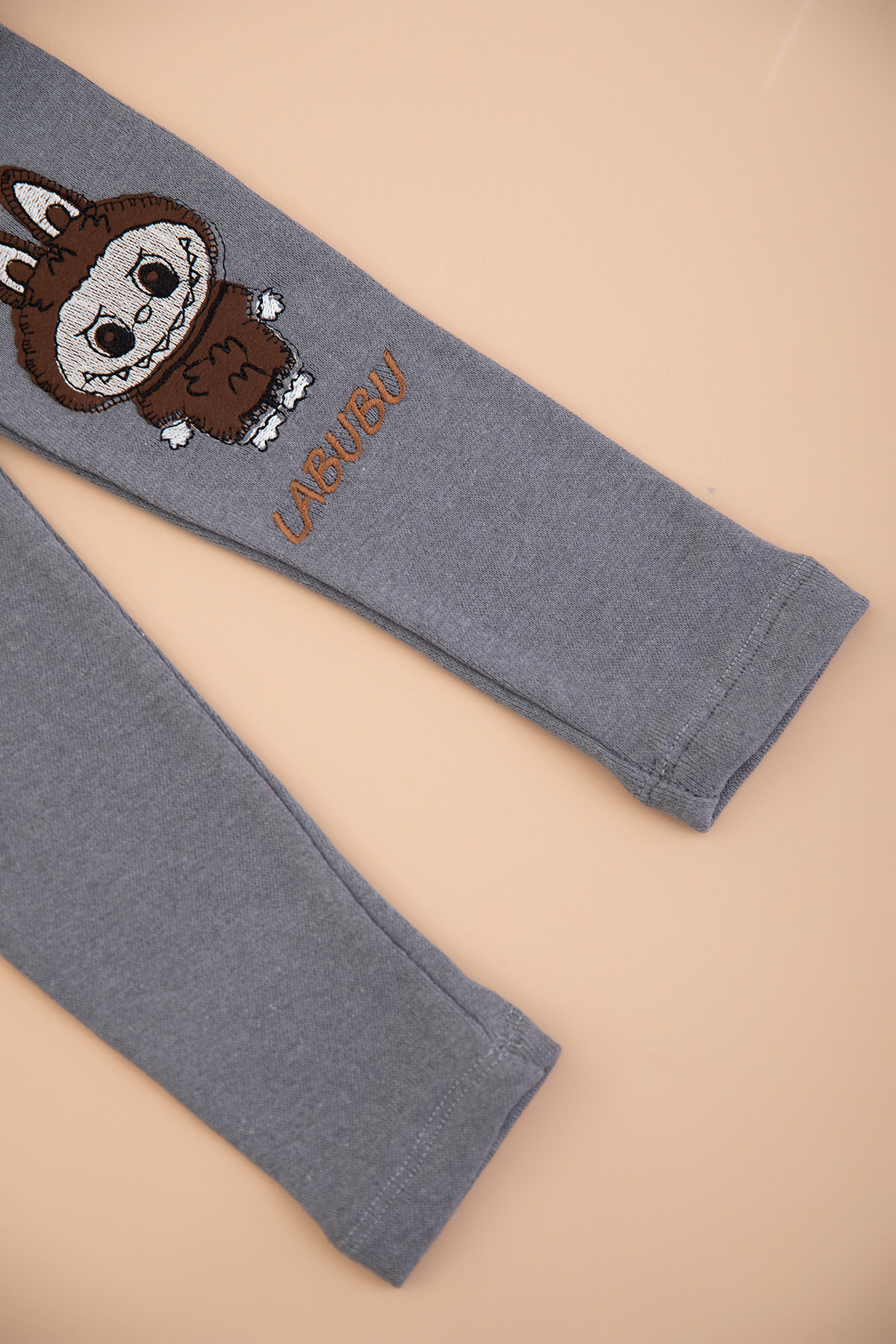 Kız Çocuk Nakışlı Şardonlu Tayt (3-10 Yaş)