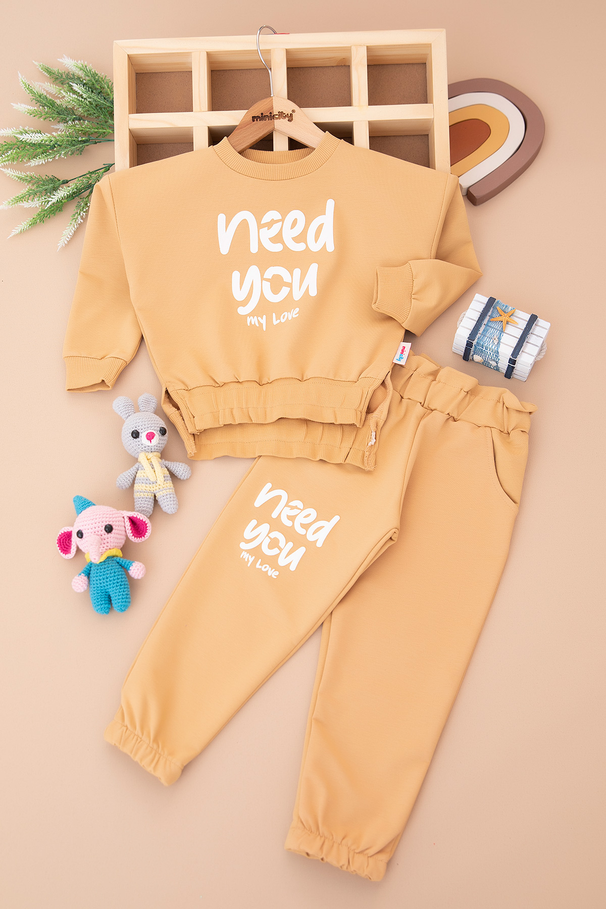 Kız Çocuk Need You Baskılı Takım - 23657 (7-10 Yaş)