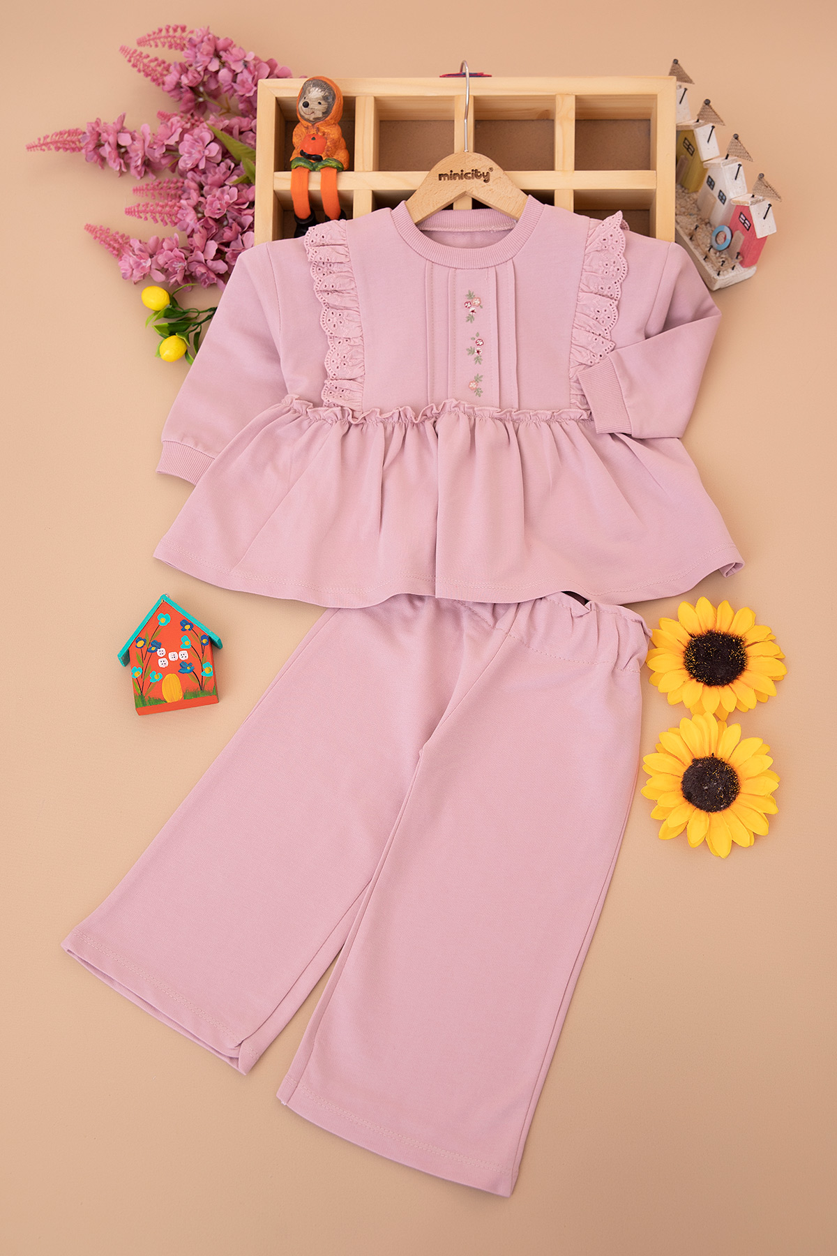 Kız Çocuk Nevürlü Nakışlı Brodeli Takım - 2819 (2-6 Yaş)