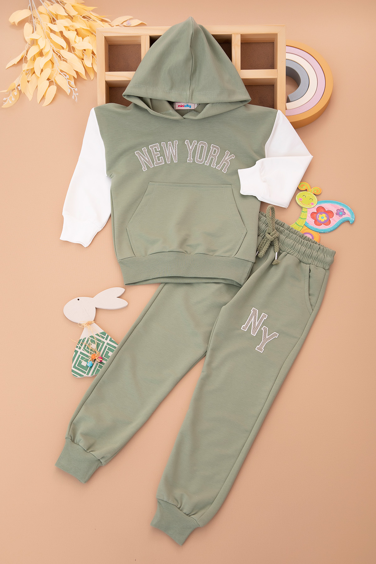 Kız Çocuk Newyork Baskılı Kapşonlu Takım - 7958 (9-12 Yaş)