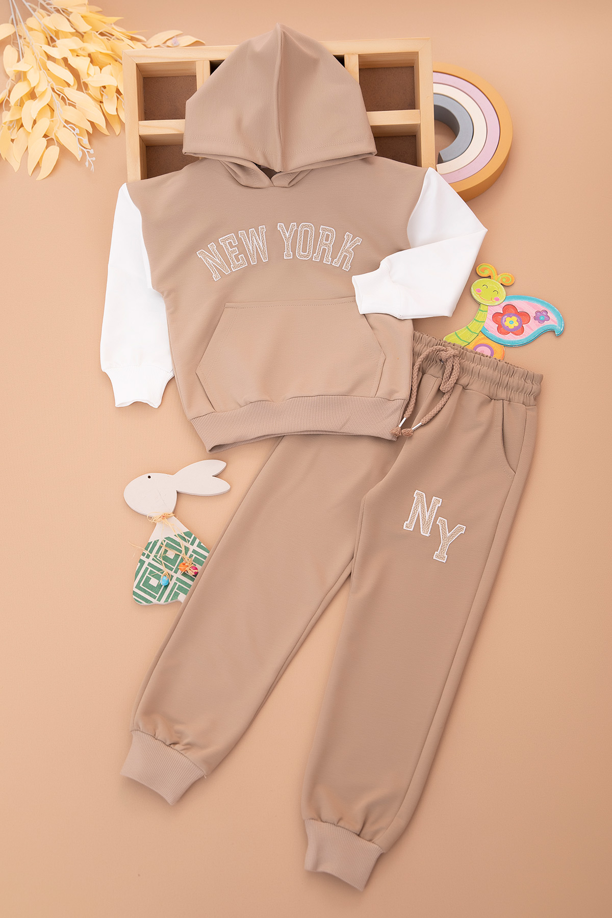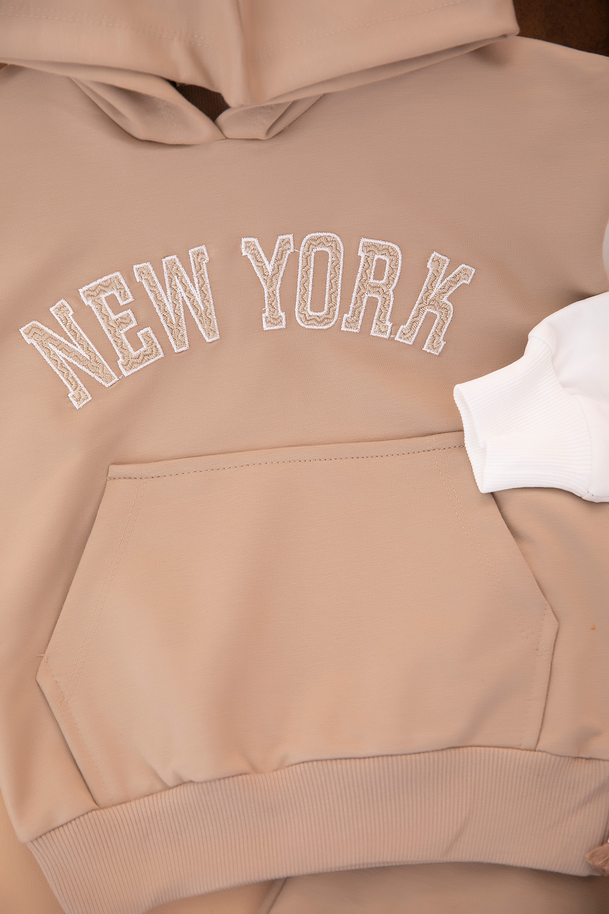 Kız Çocuk Newyork Baskılı Kapşonlu Takım - 7958 (9-12 Yaş)