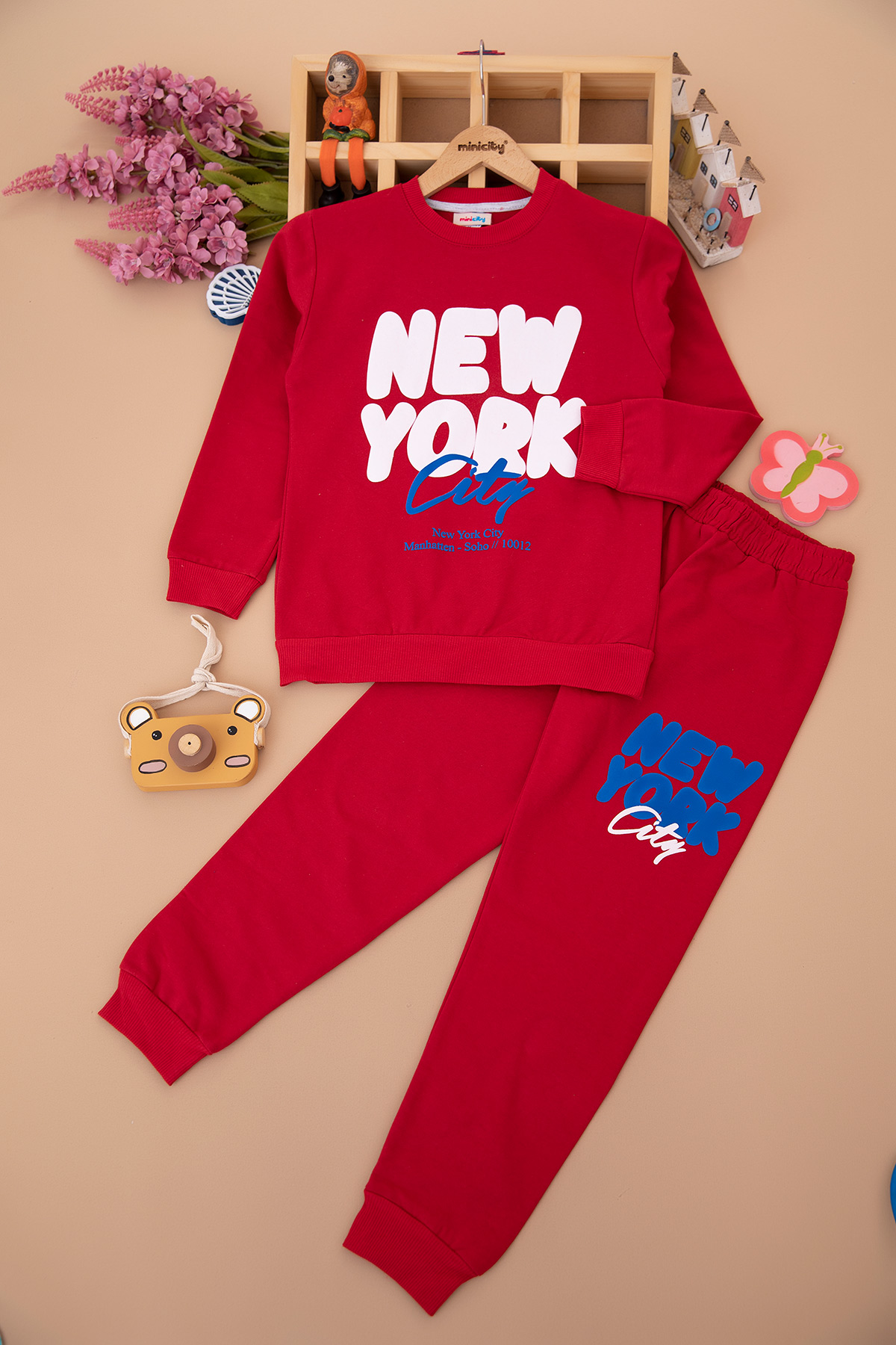 Kız Çocuk Newyork Baskılı Üçip Takım - 6101 (10-14 Yaş)