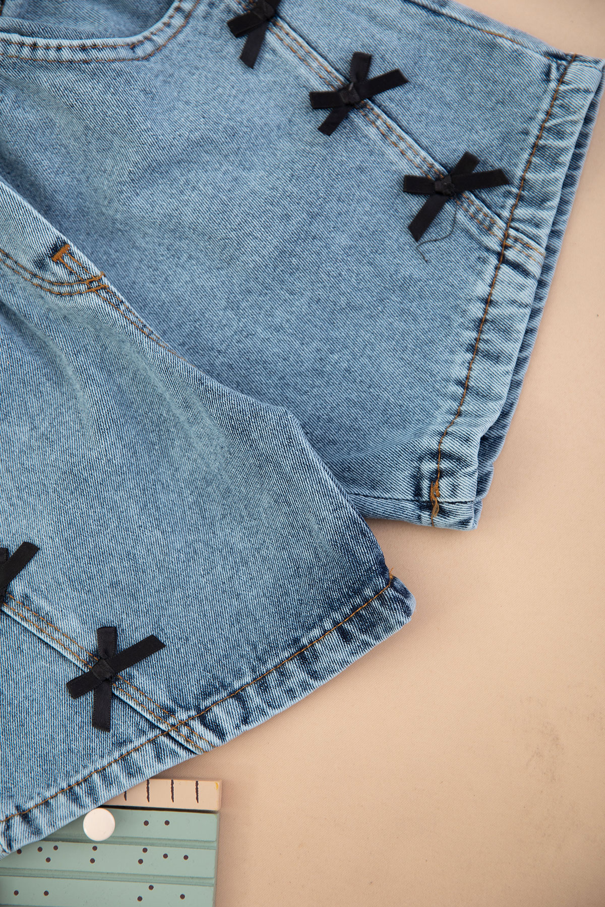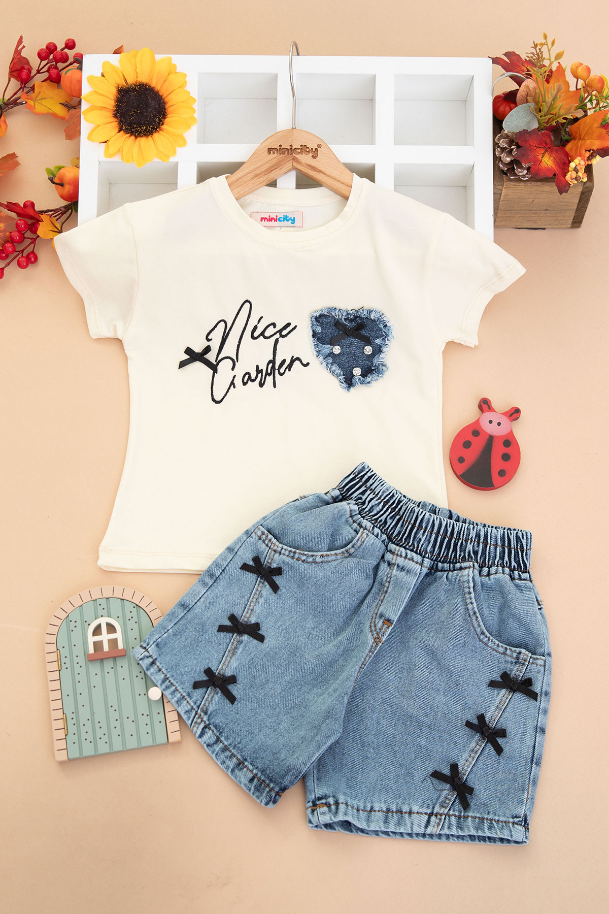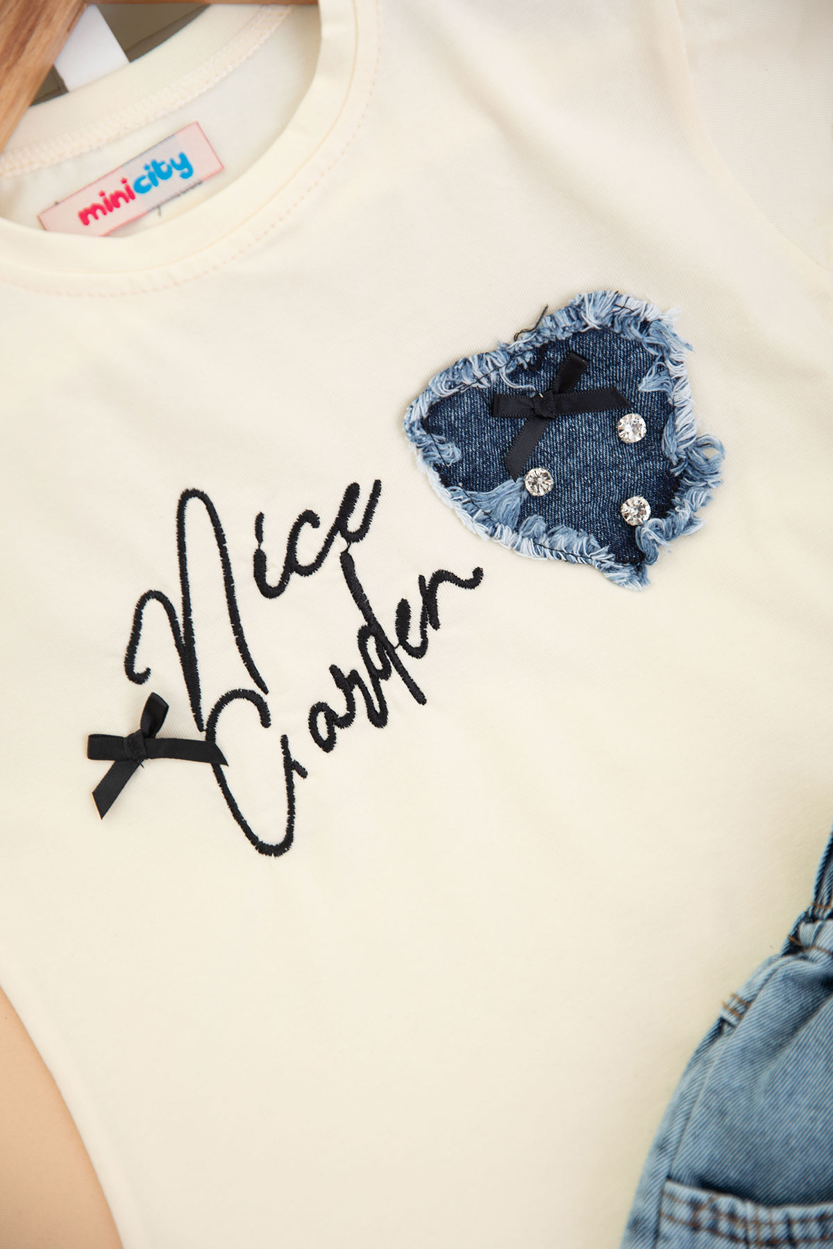 Kız Çocuk Nice Kalp Nakışlı Kot Şortlu Takım - 1710 (3-7 Yaş)