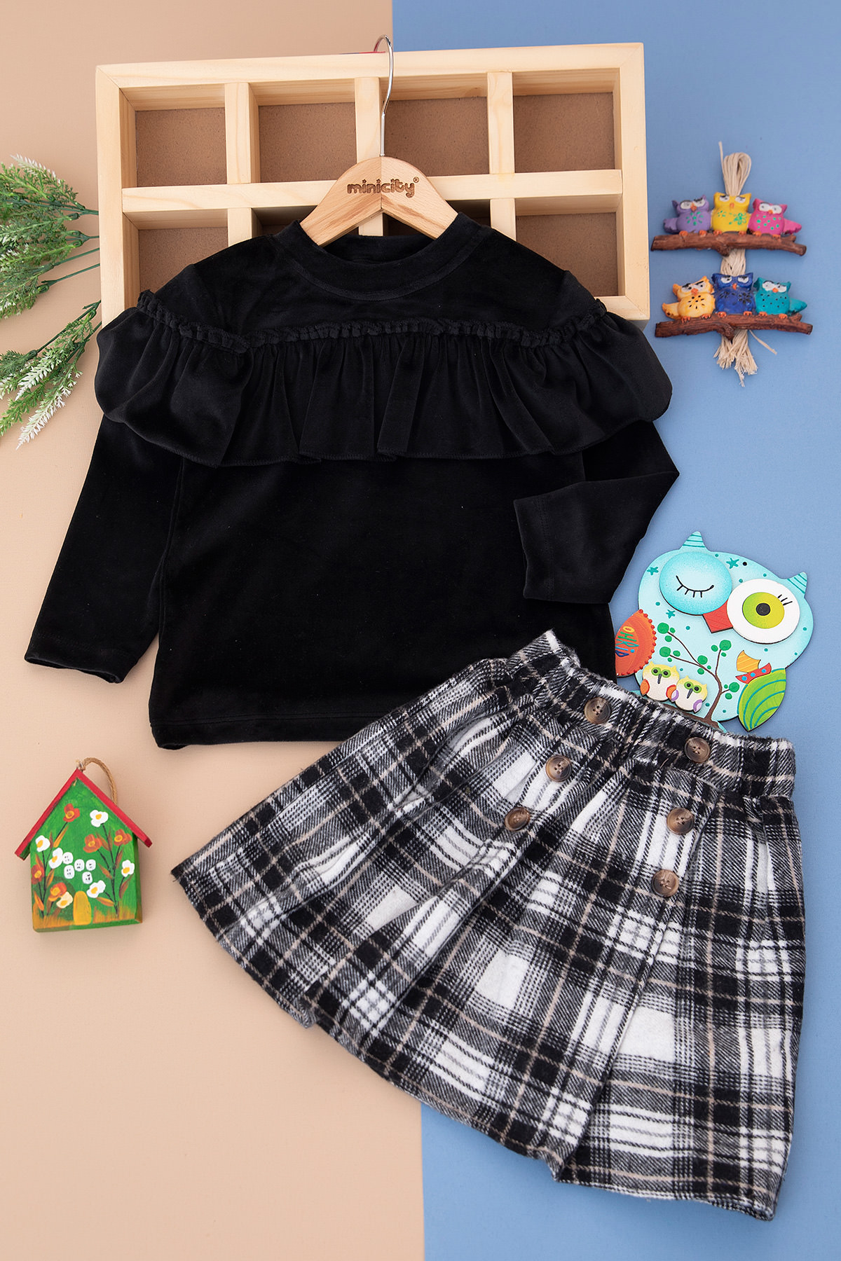 Kız Çocuk Oduncu Kadife Takım - 9585 (5-9 Yaş)