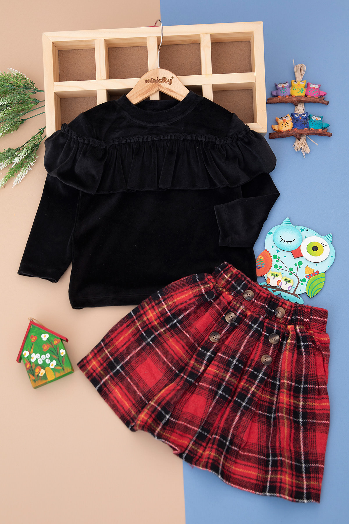Kız Çocuk Oduncu Kadife Takım - 9585 (5-9 Yaş)