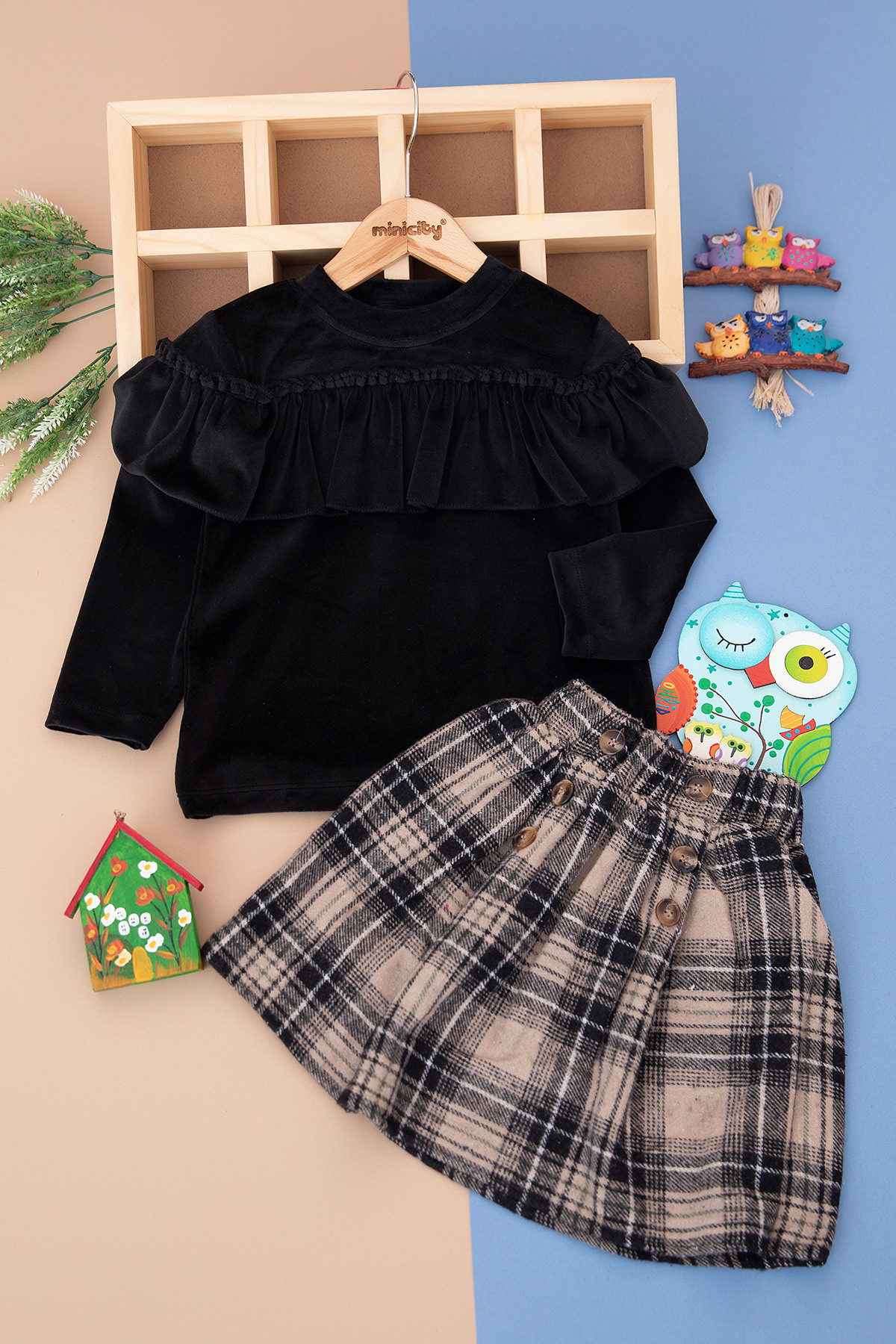Kız Çocuk Oduncu Kadife Takım - 9585 (5-9 Yaş)