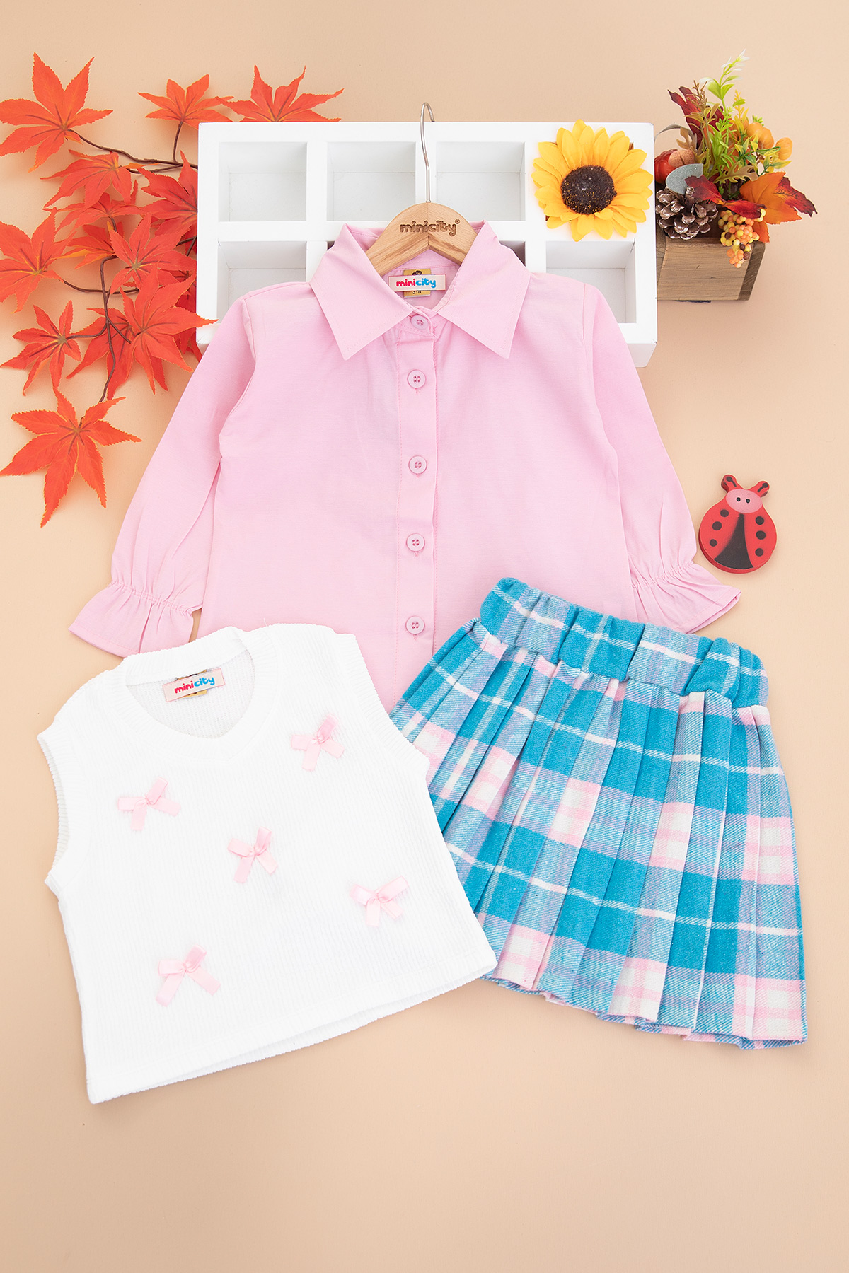 Kız Çocuk Oduncu Pilise Etekli Takım - 14046 (3-7 Yaş)
