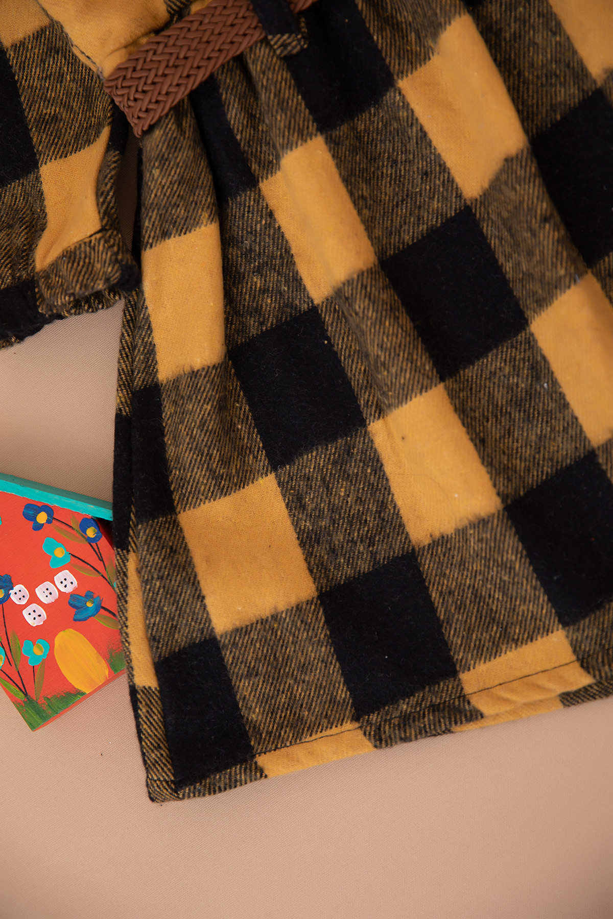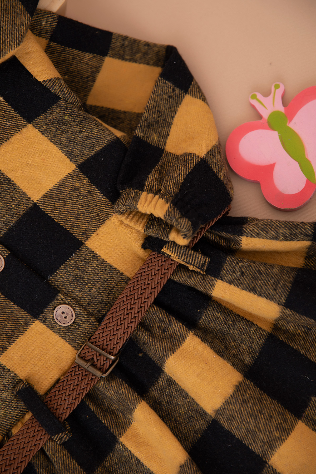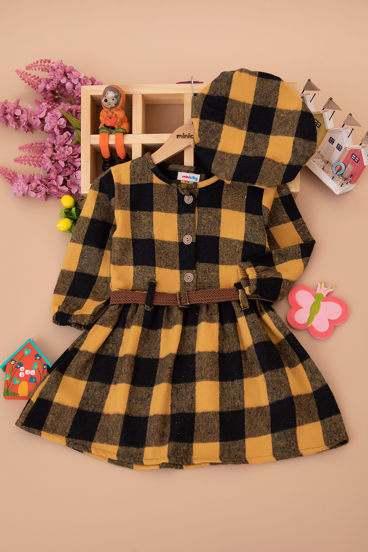 Kız Çocuk Oduncu Şapkalı Kemerli Elbise - 13003 (5-9 Yaş)
