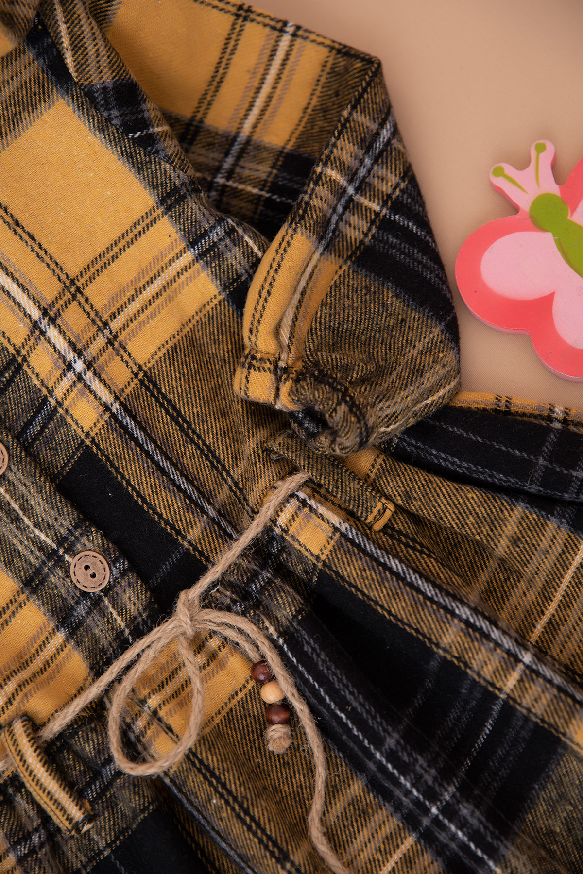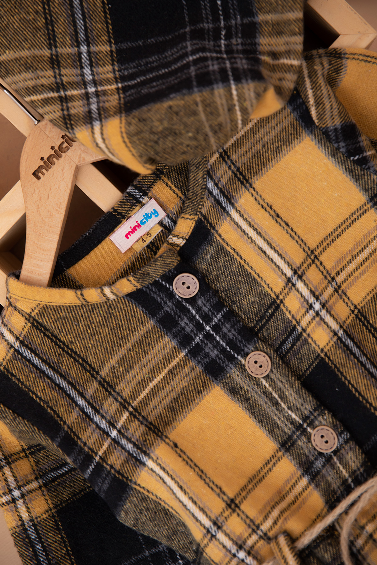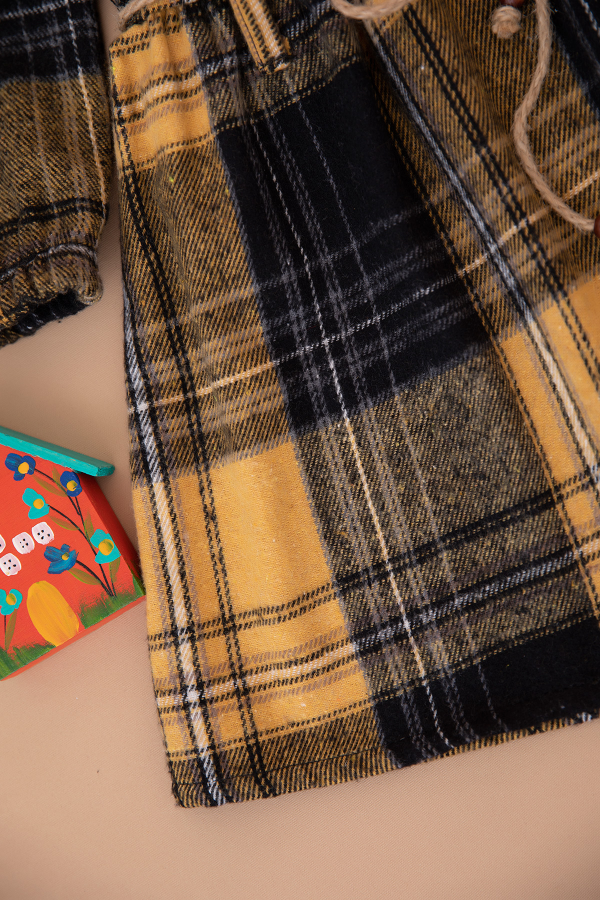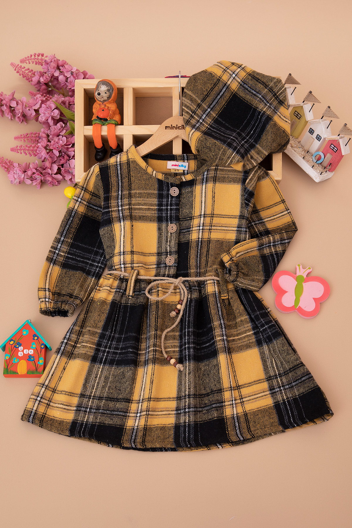 Kız Çocuk Oduncu Şapkalı Kemerli Elbise - 13003 (5-9 Yaş)