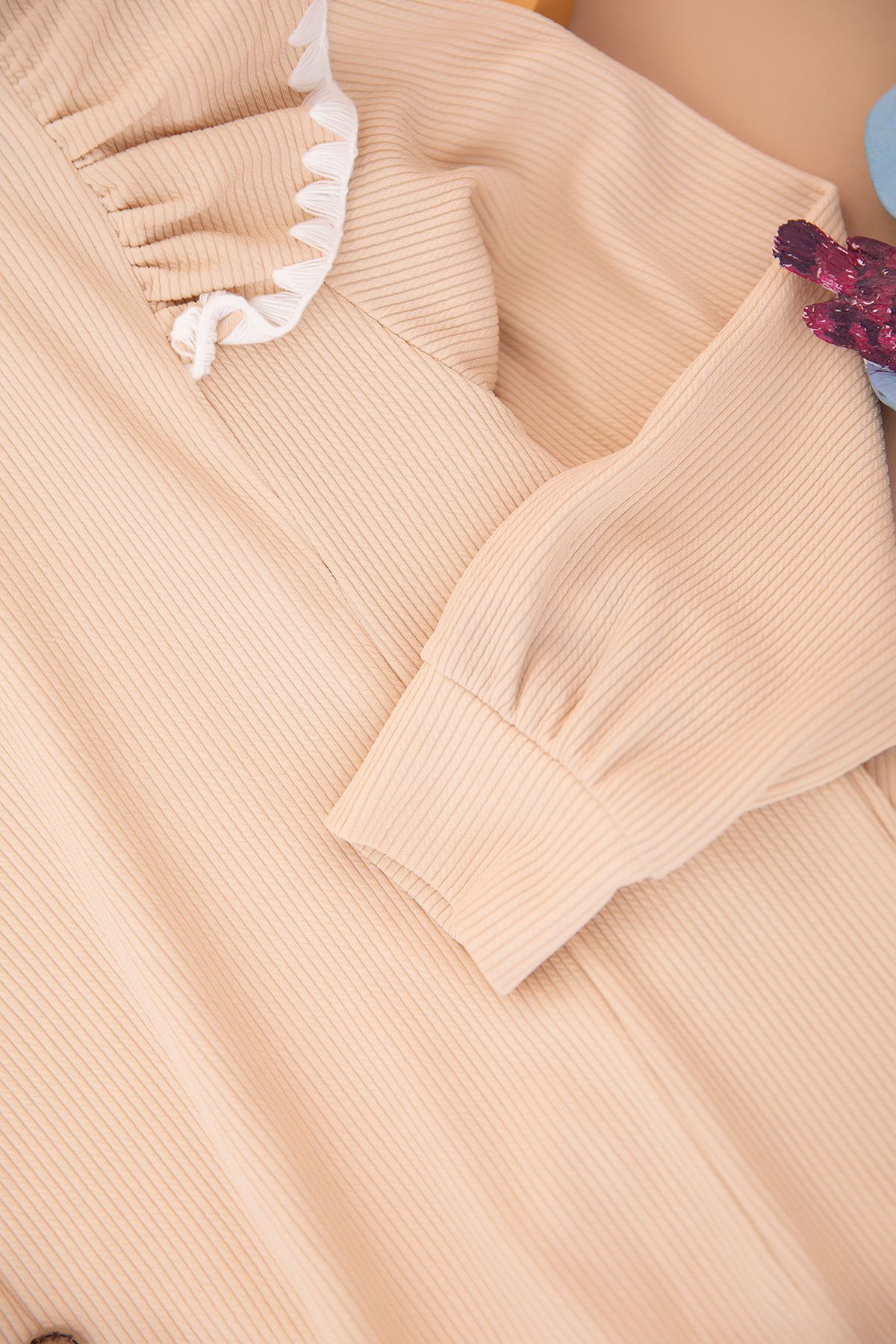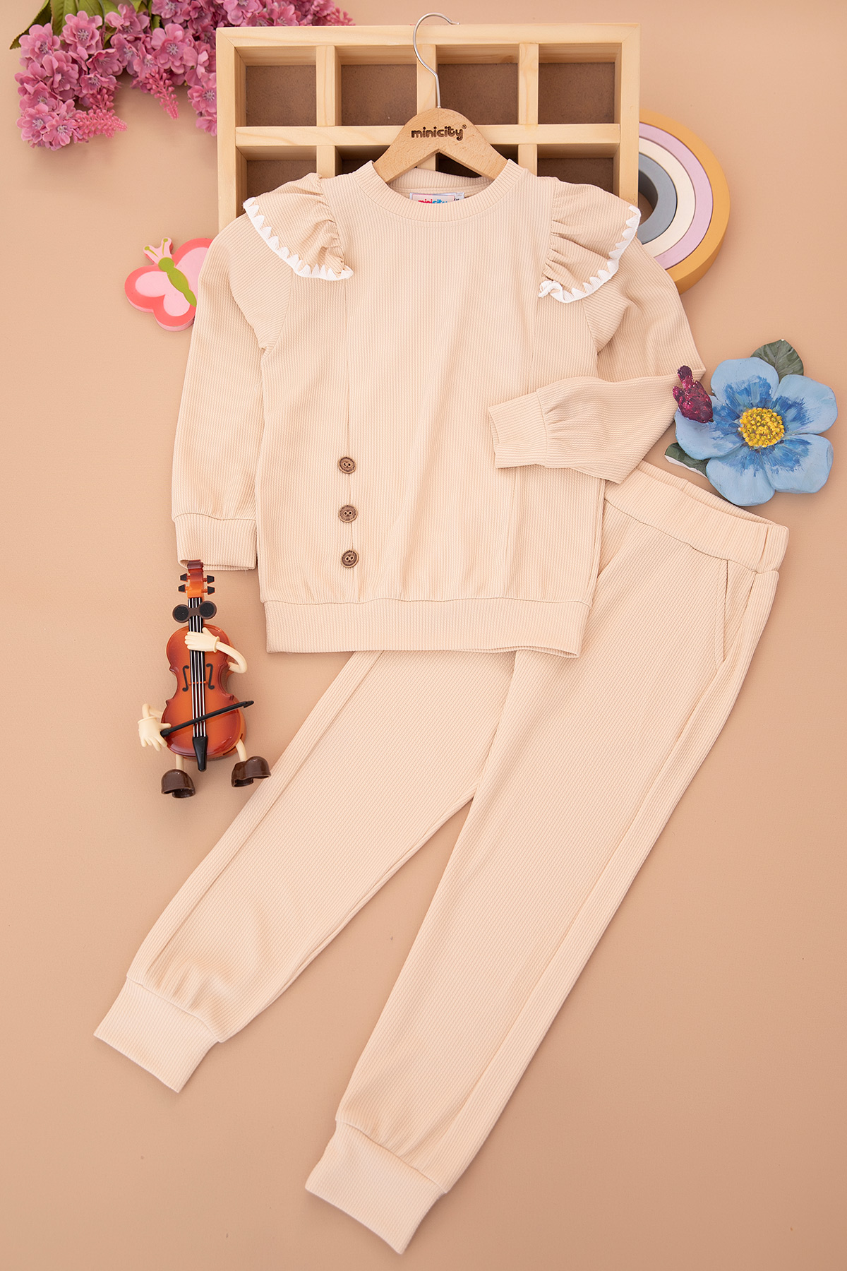 Kız Çocuk Omuz Fırfırlı Düğmeli Takım - 1037 (6-10 Yaş)