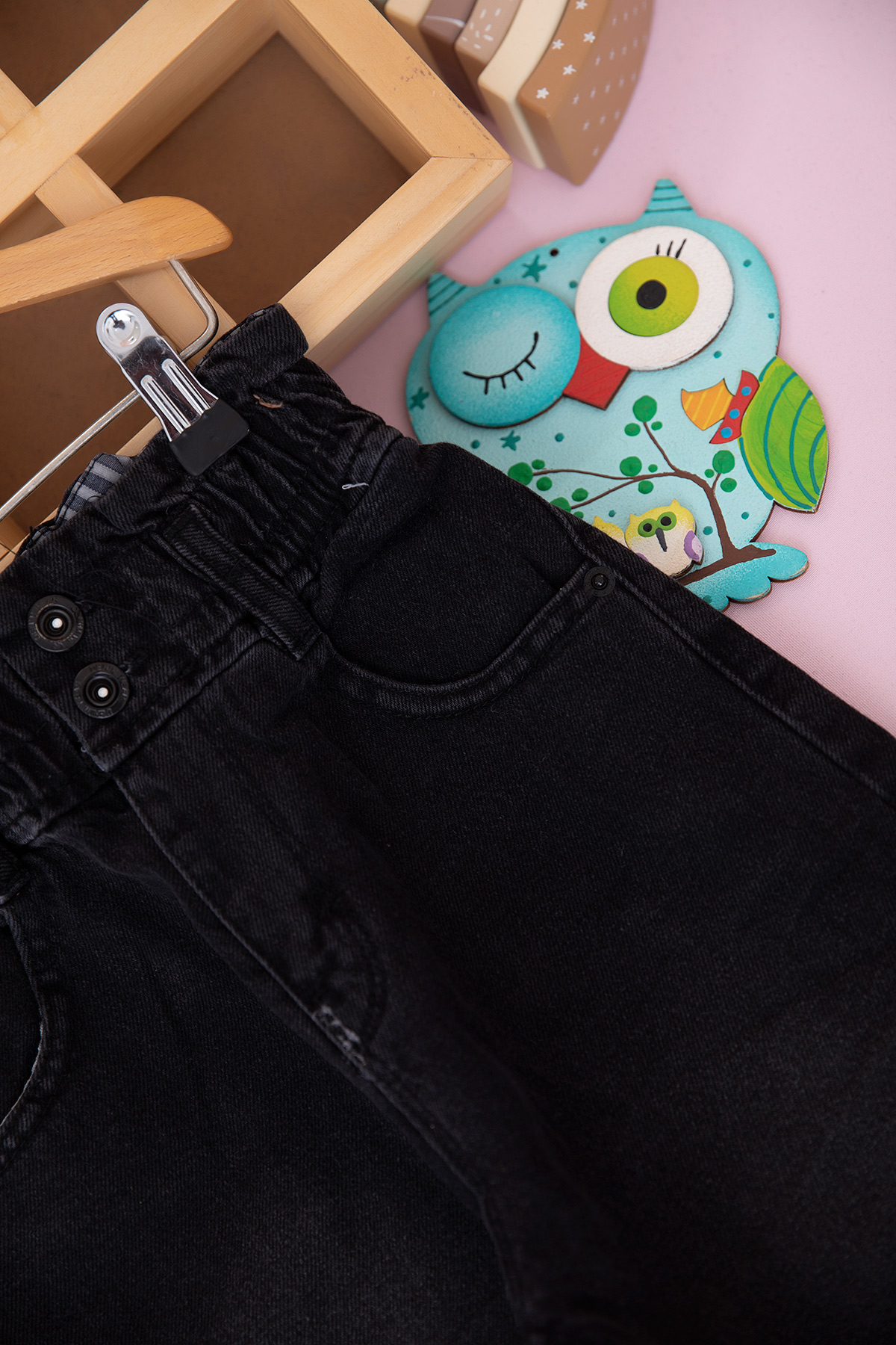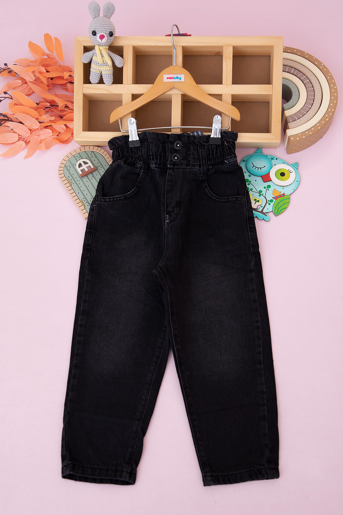Kız Çocuk Ön Fermuarlı Düğmeli Kot Pantolon - 3292 (5-8 Yaş)