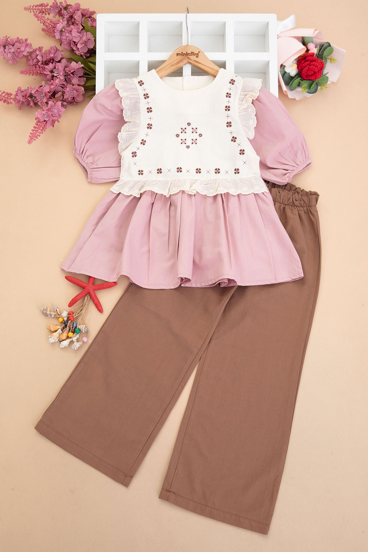 Kız Çocuk Ön Fistolu Fırfırlı Takım - 3096 (6-10 Yaş)