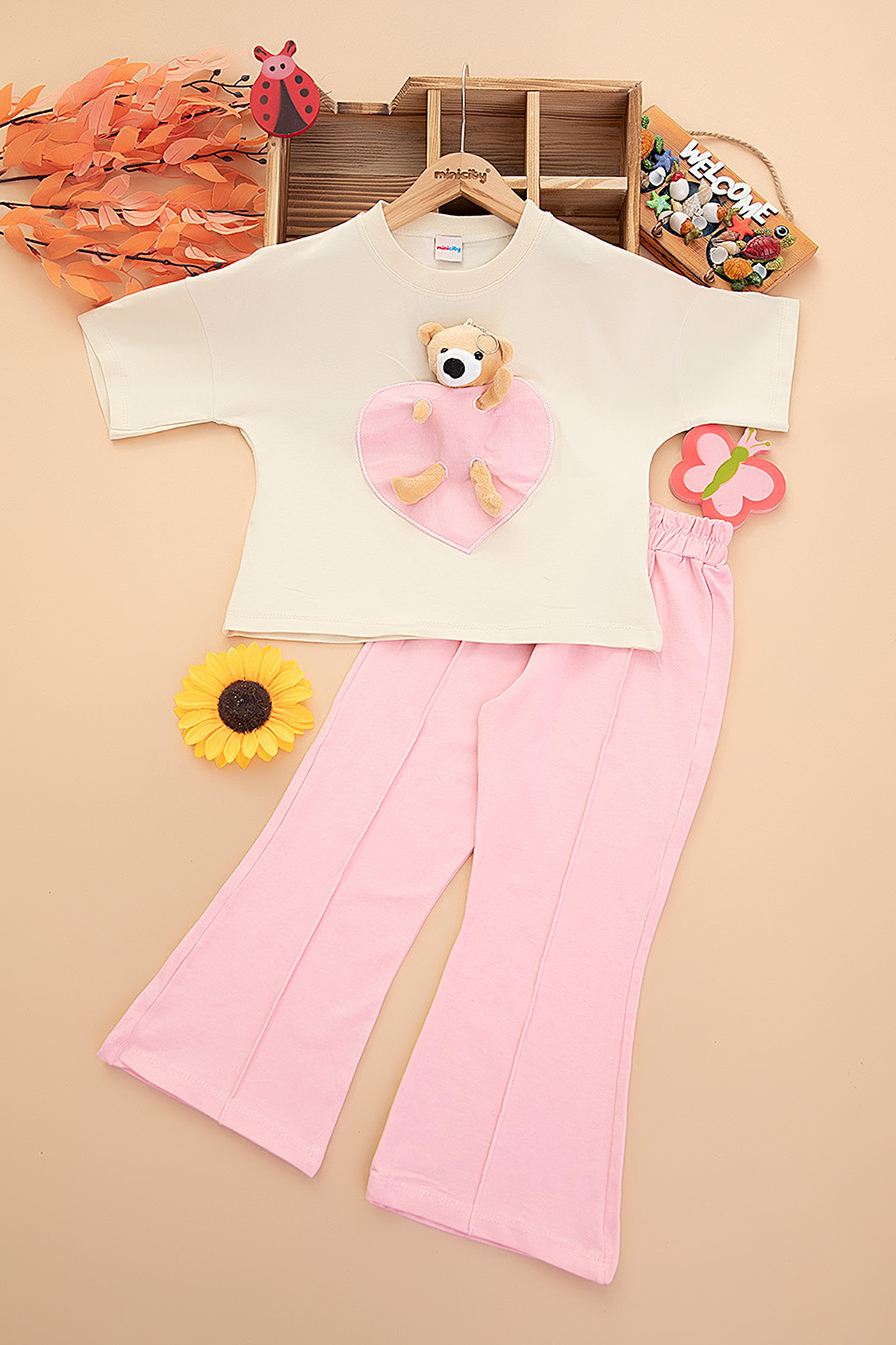 Kız Çocuk Ön Kalp Ayıcıklı Takım - 12604 (7-11 Yaş)