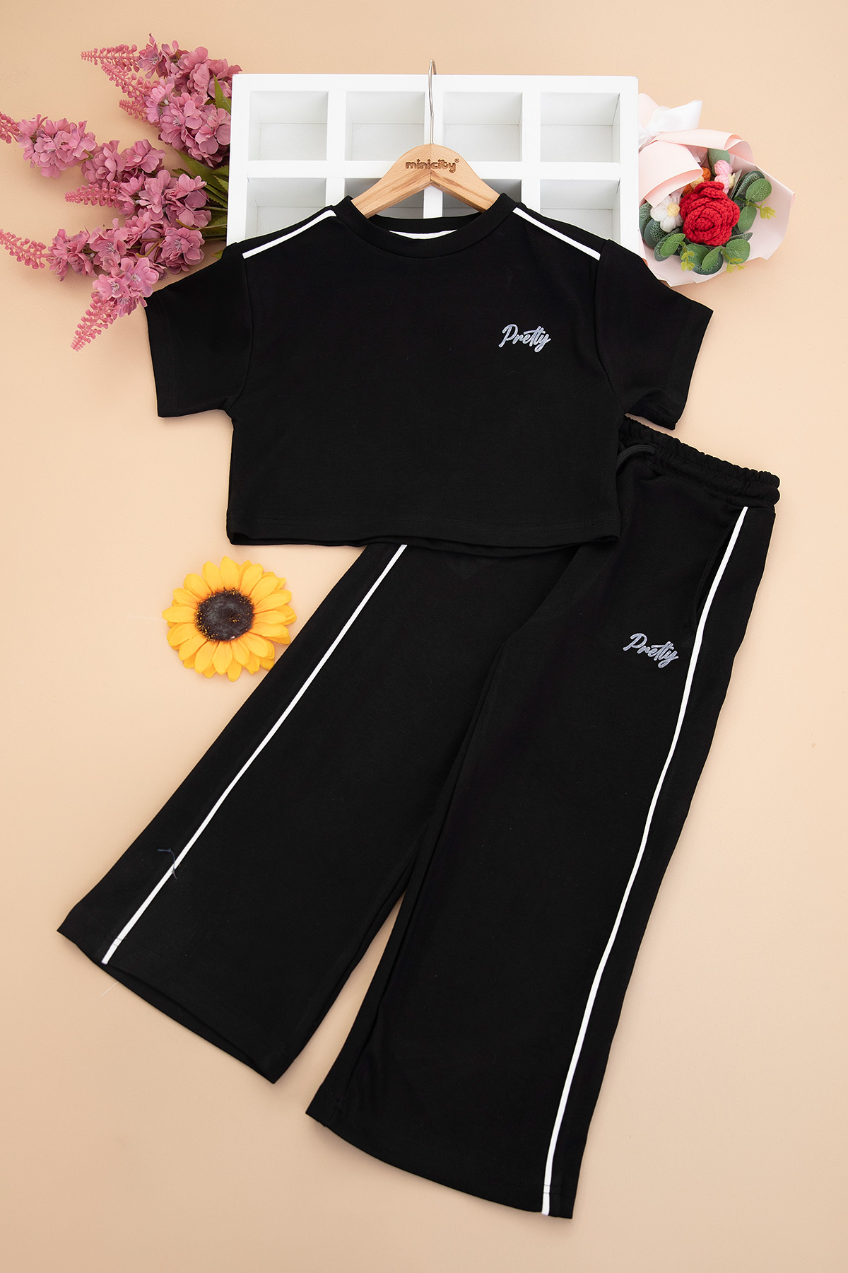 Kız Çocuk Ön Nakışlı Biyeli Takım - 8988 (7-10 Yaş)