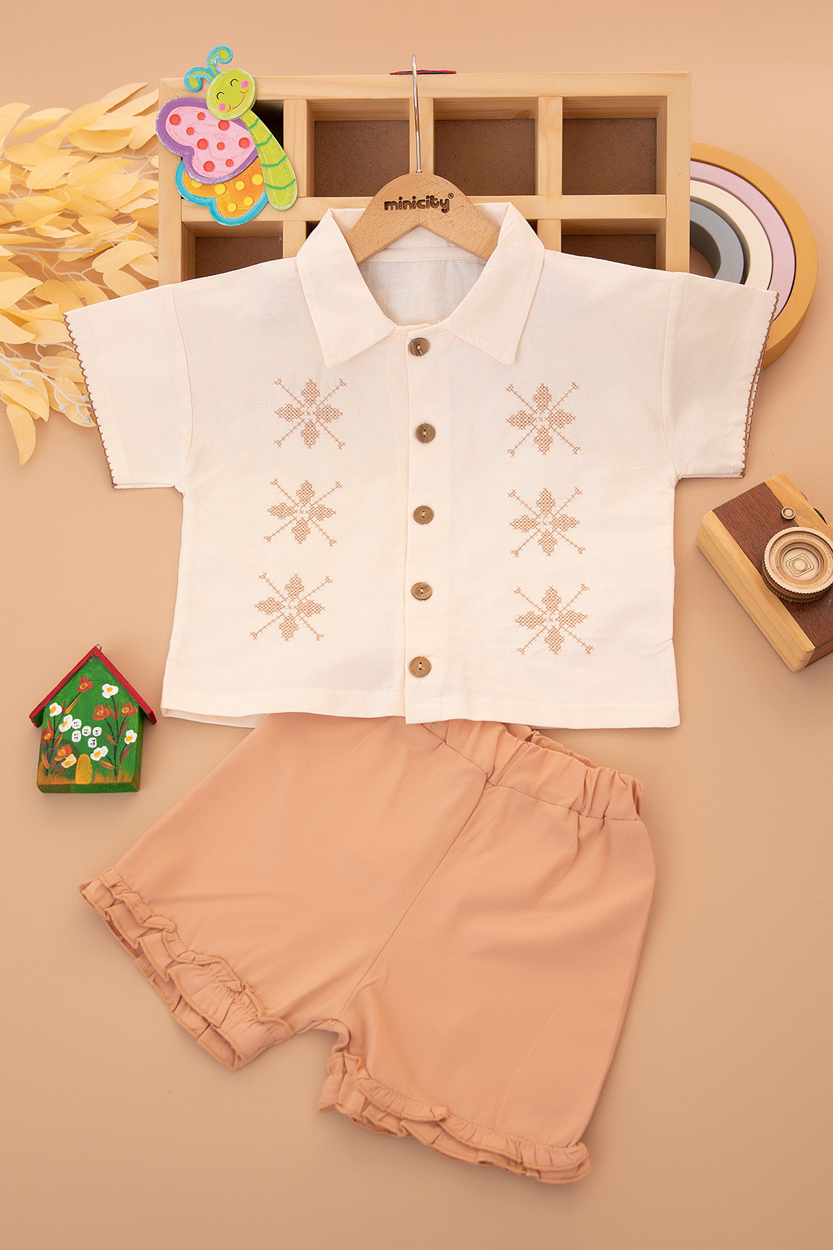Kız Çocuk Ön Nakışlı Şortlu Takım - 2760 (2-6 Yaş)