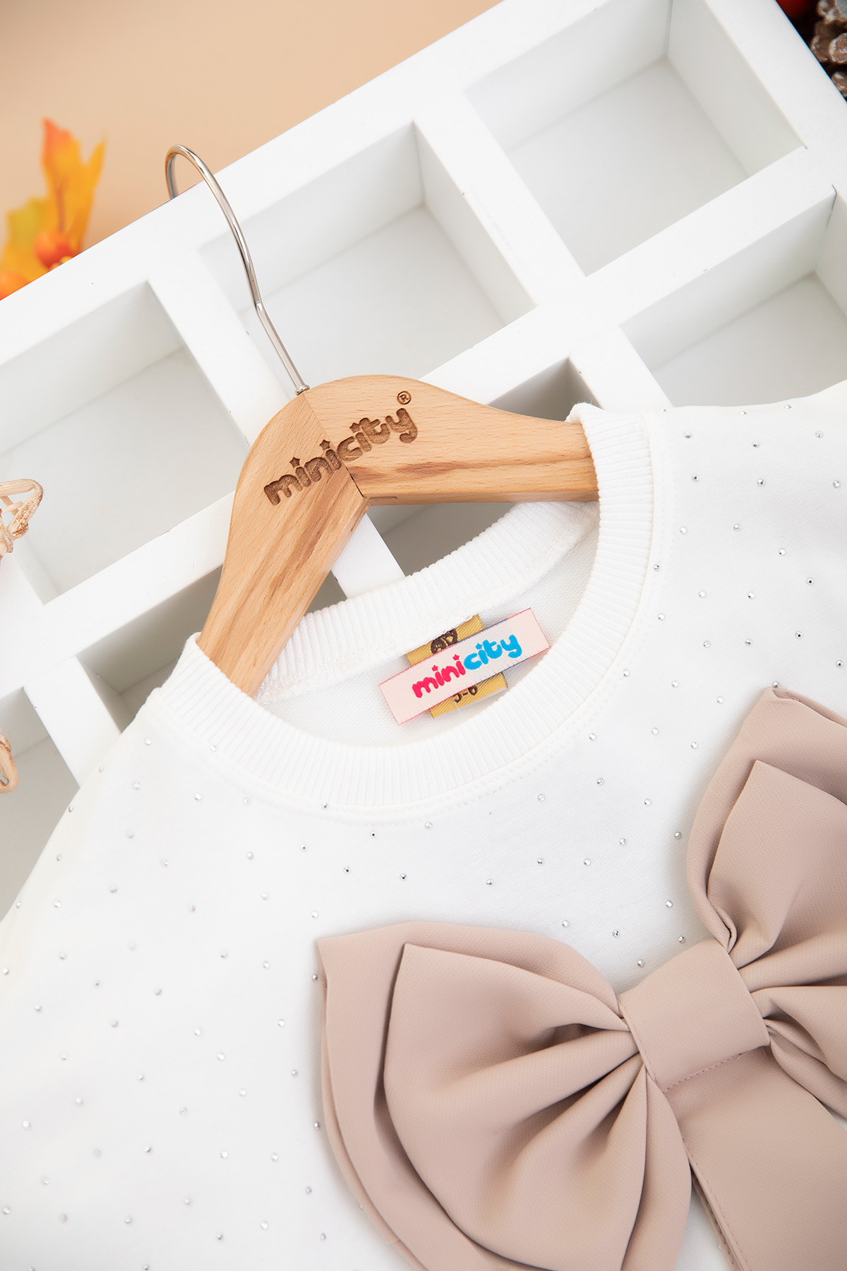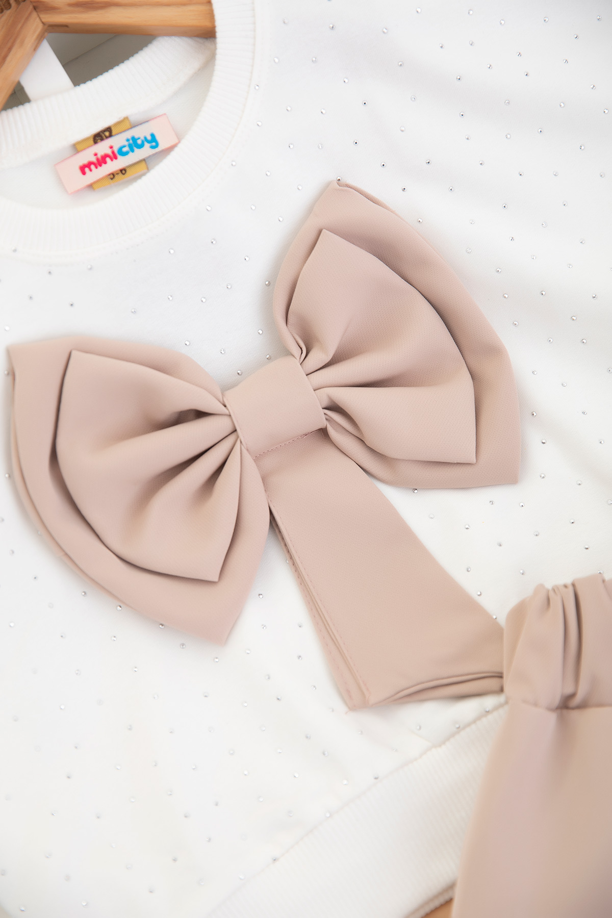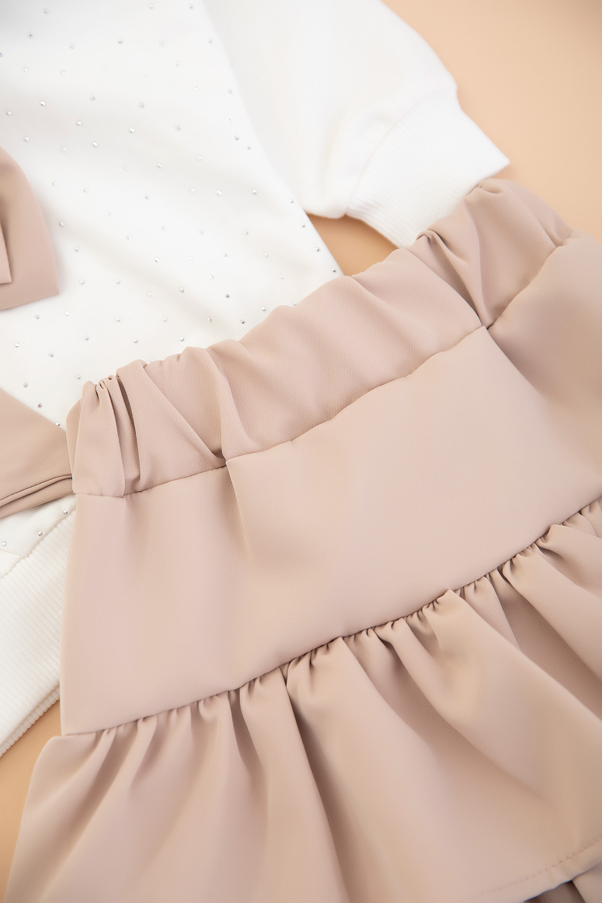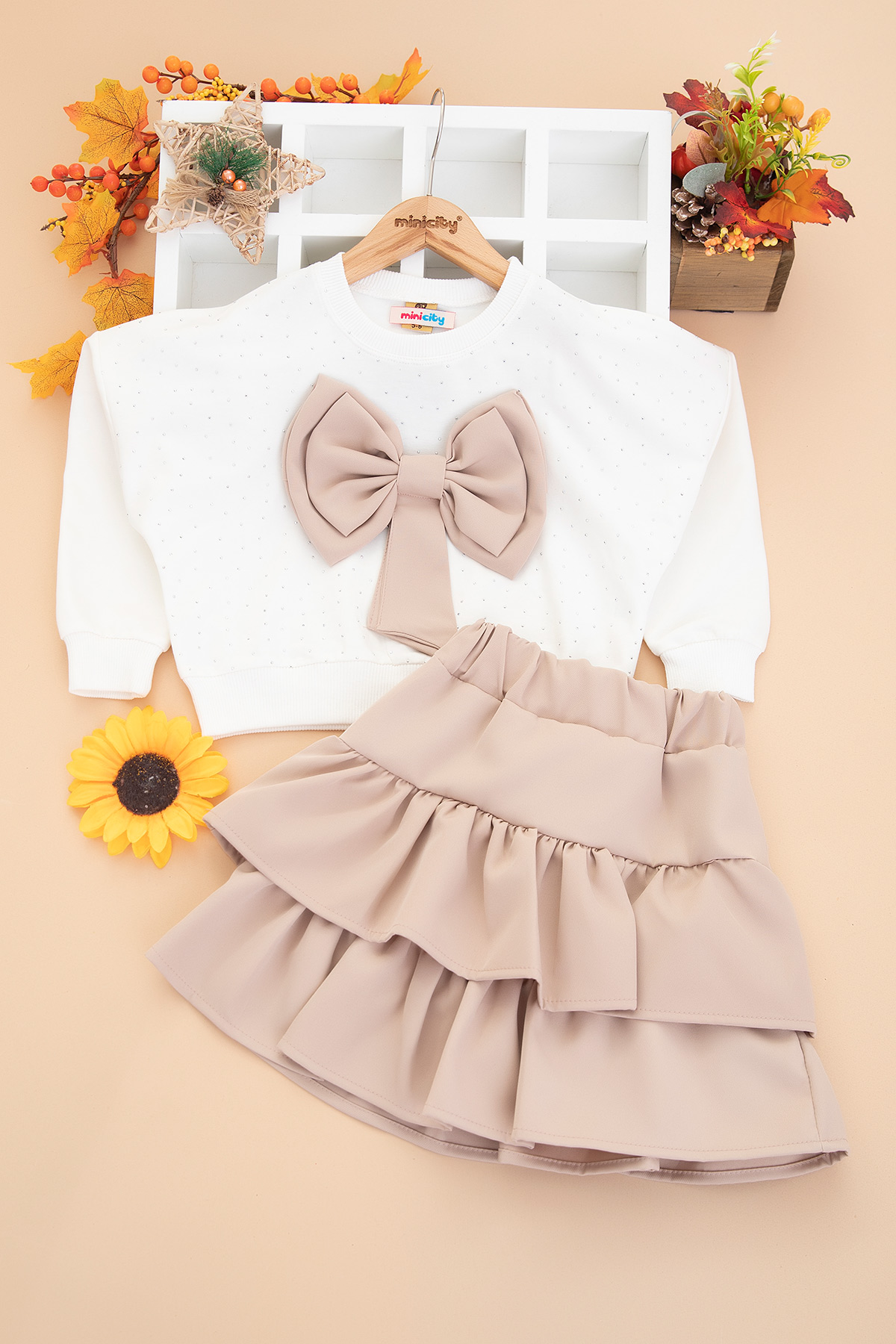 Kız Çocuk Ön Taşlı Fiyonklu Etekli Takım - 14539 (5-11 Yaş)