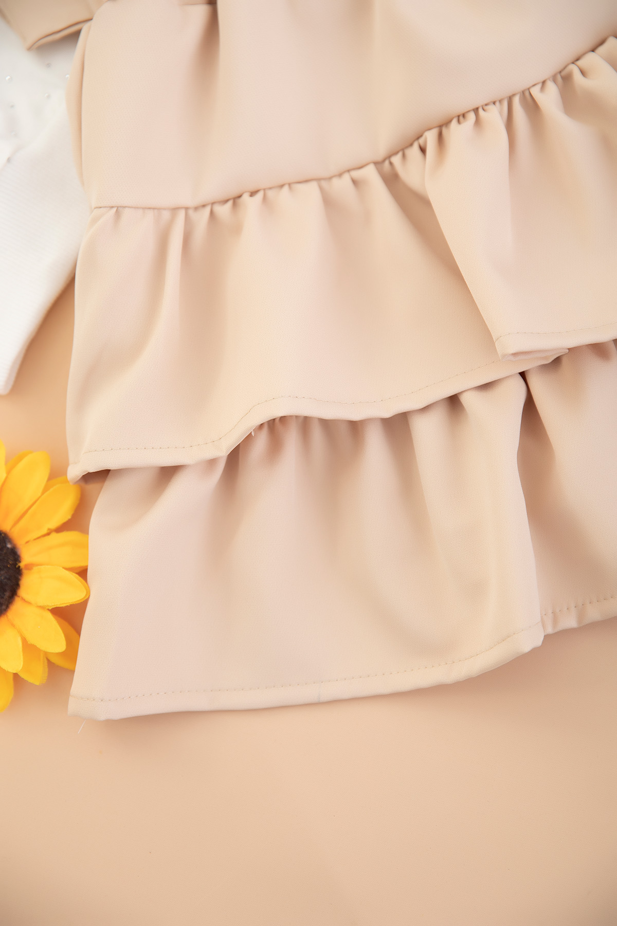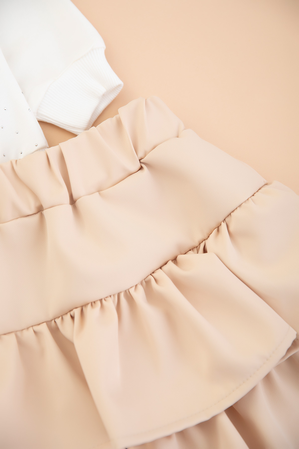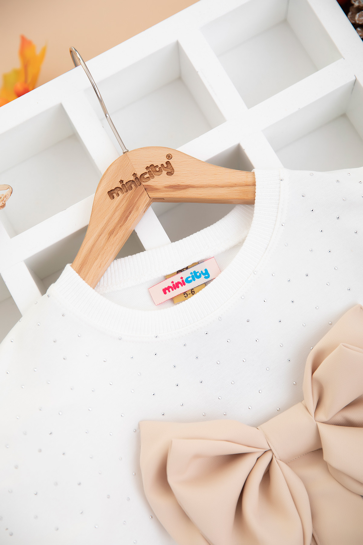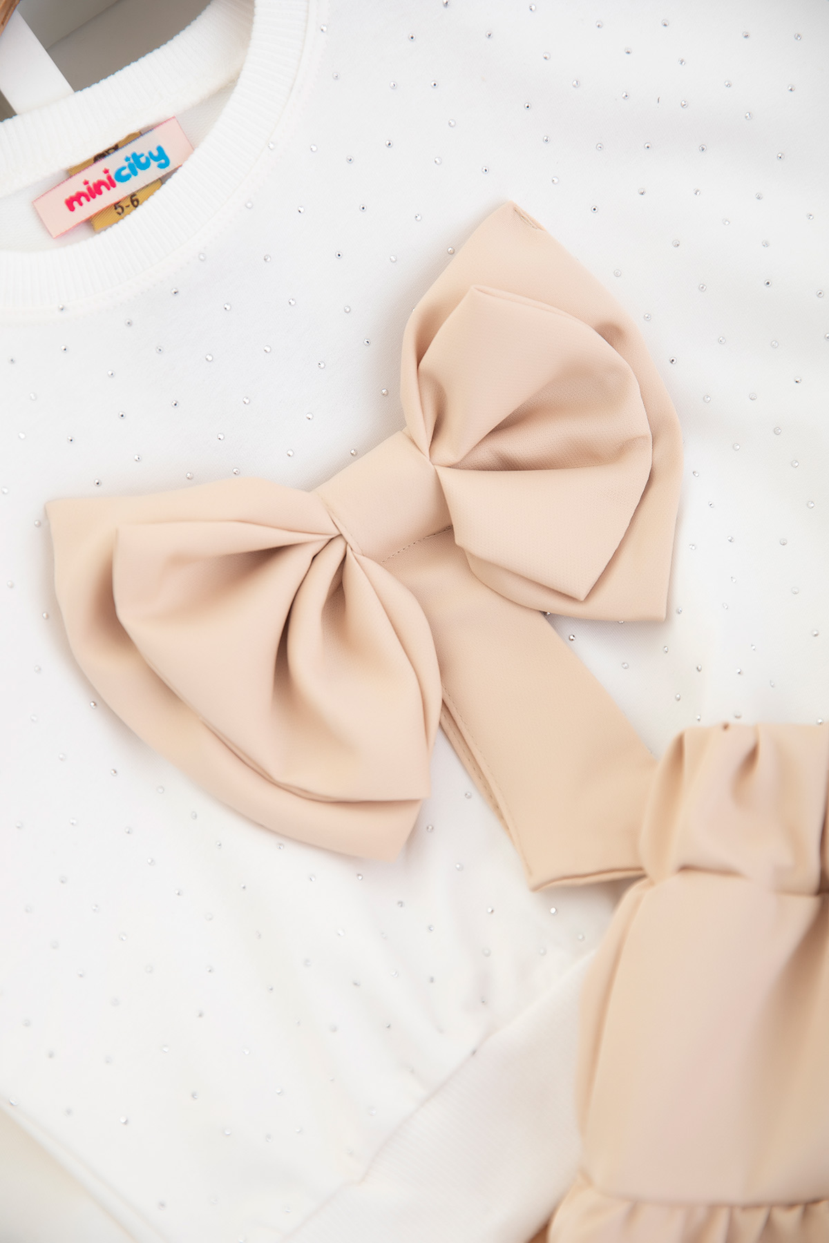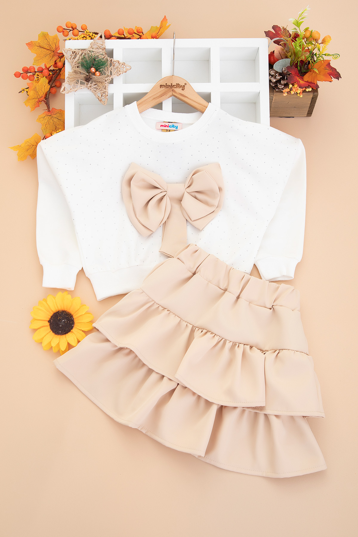 Kız Çocuk Ön Taşlı Fiyonklu Etekli Takım - 14539 (5-11 Yaş)
