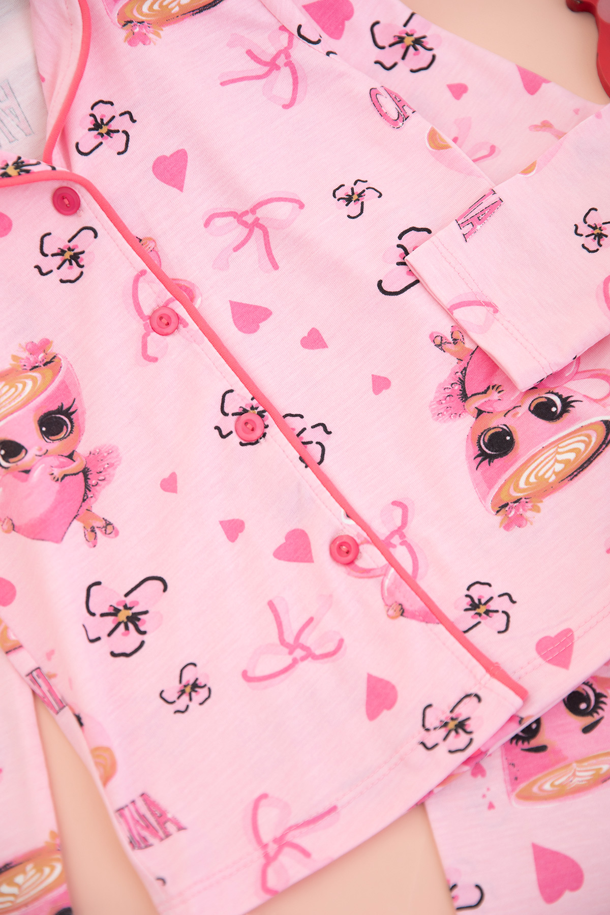 Kız Çocuk Önden Düğmeli Pijama Takım (4-12 Yaş)