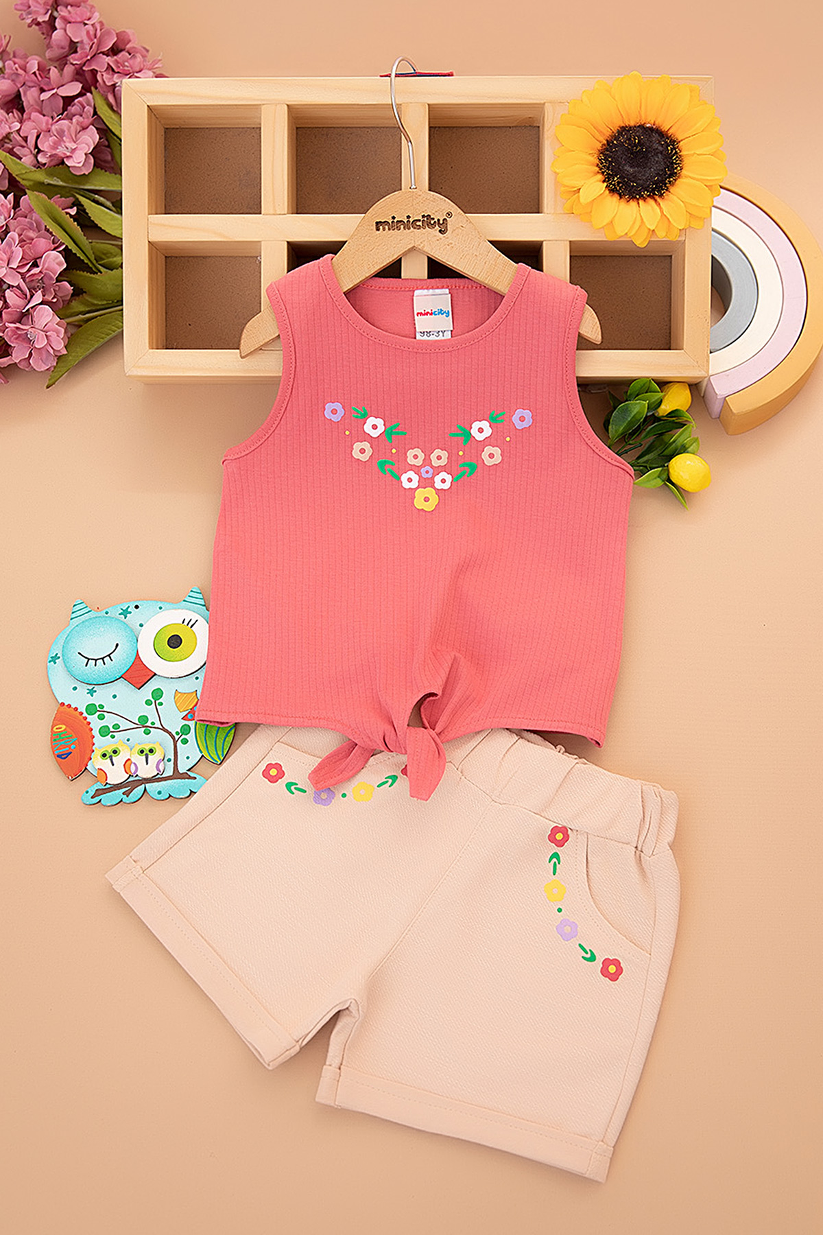 Kız Çocuk Önü Bağlamalı Şortlu Takım- 25538 (3-6 Yaş)