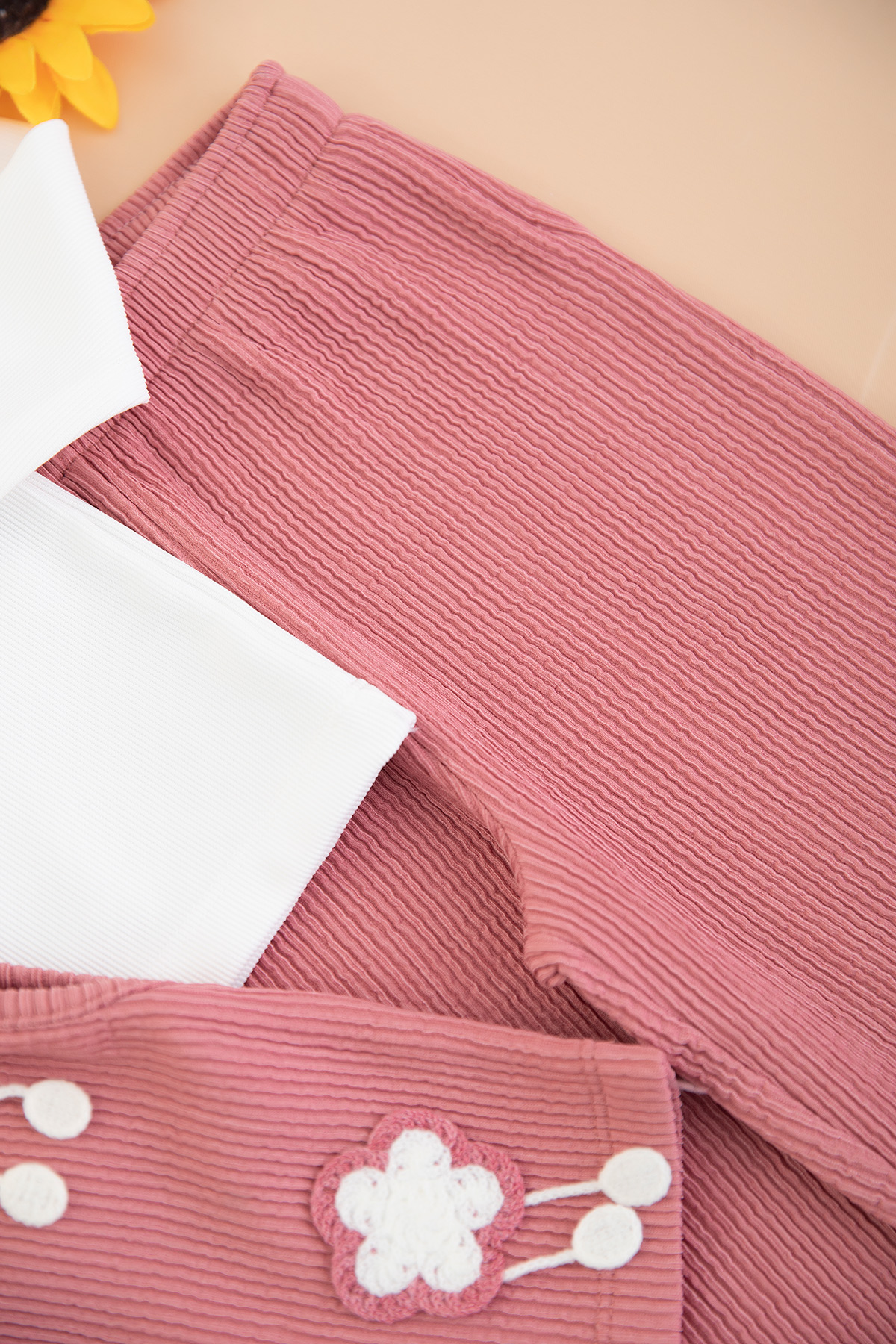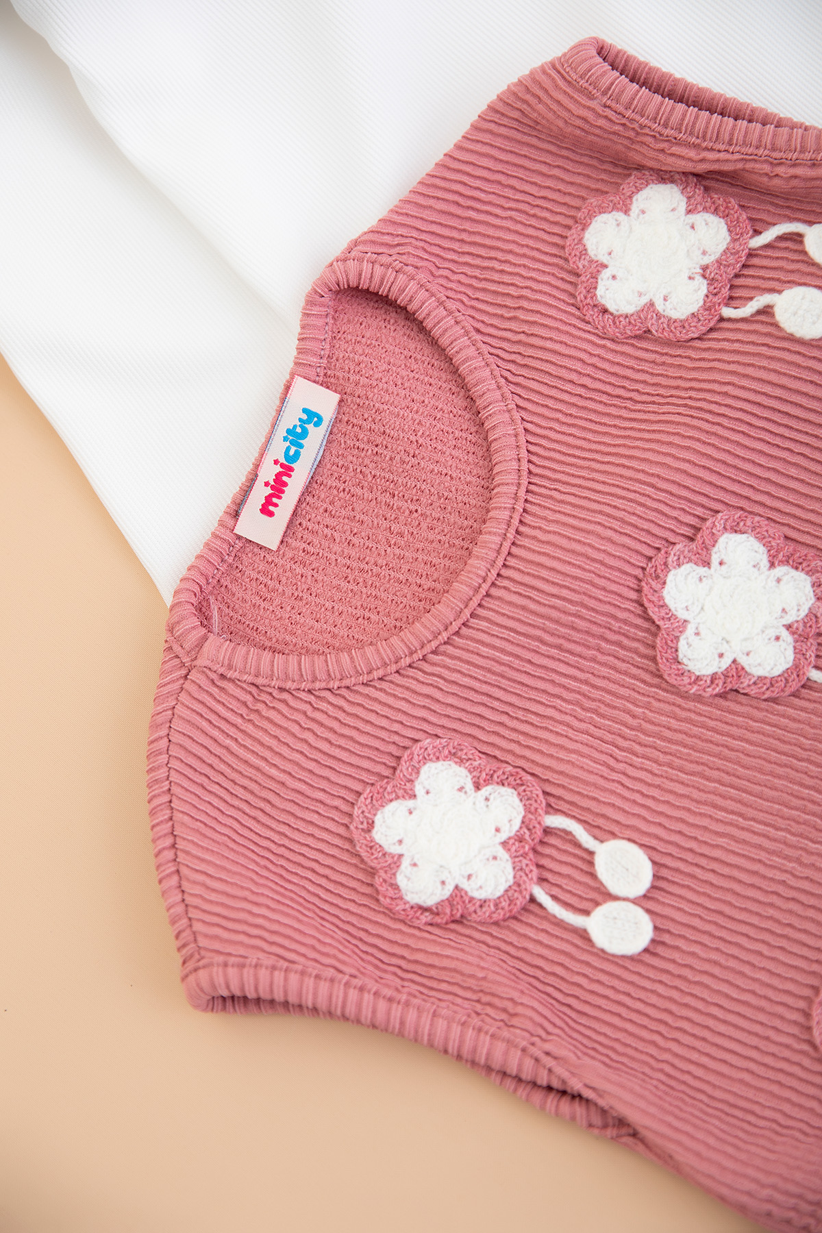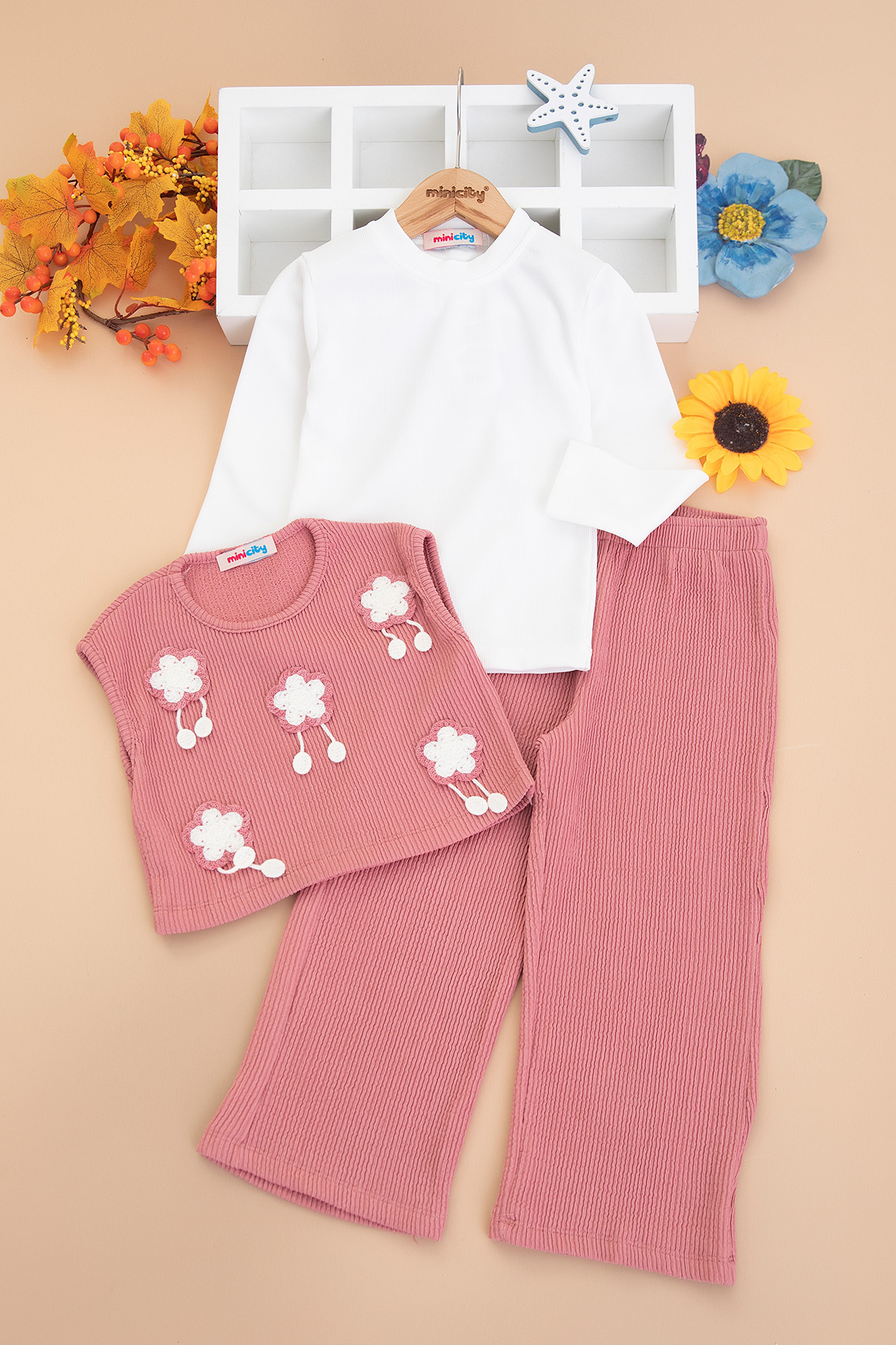 Kız Çocuk Önü Çiçek Nakışlı Takım - 5134 (3-10 Yaş)