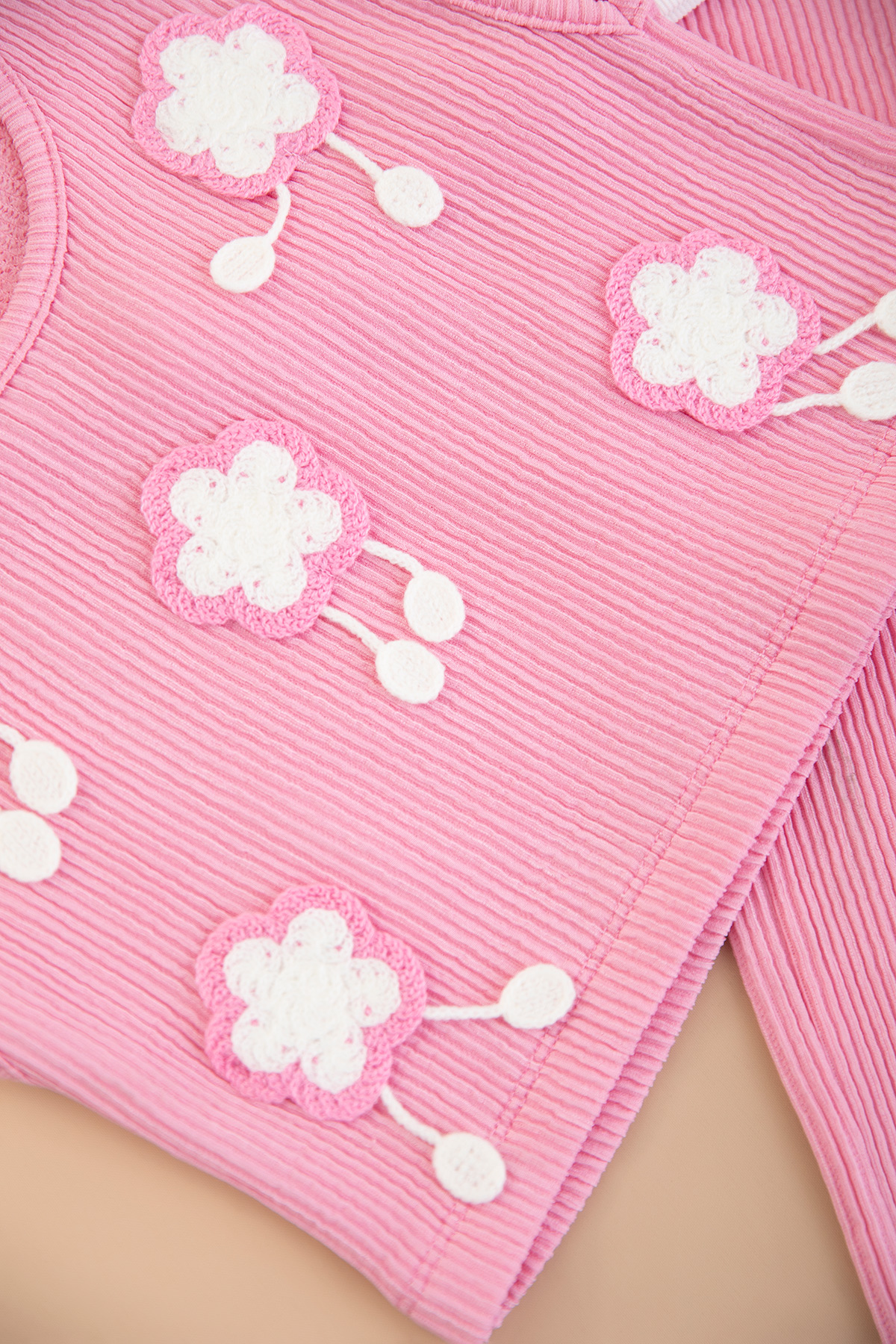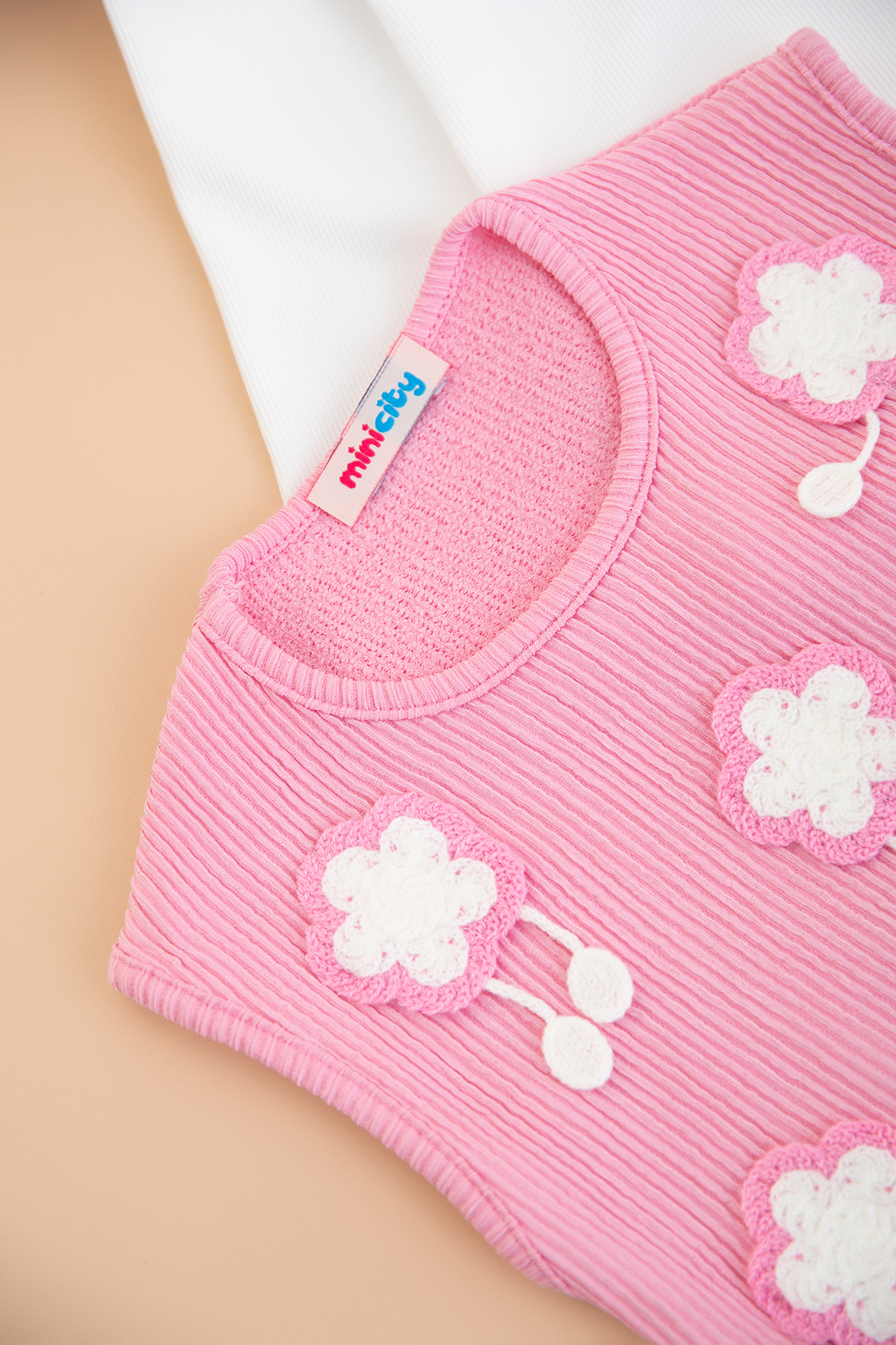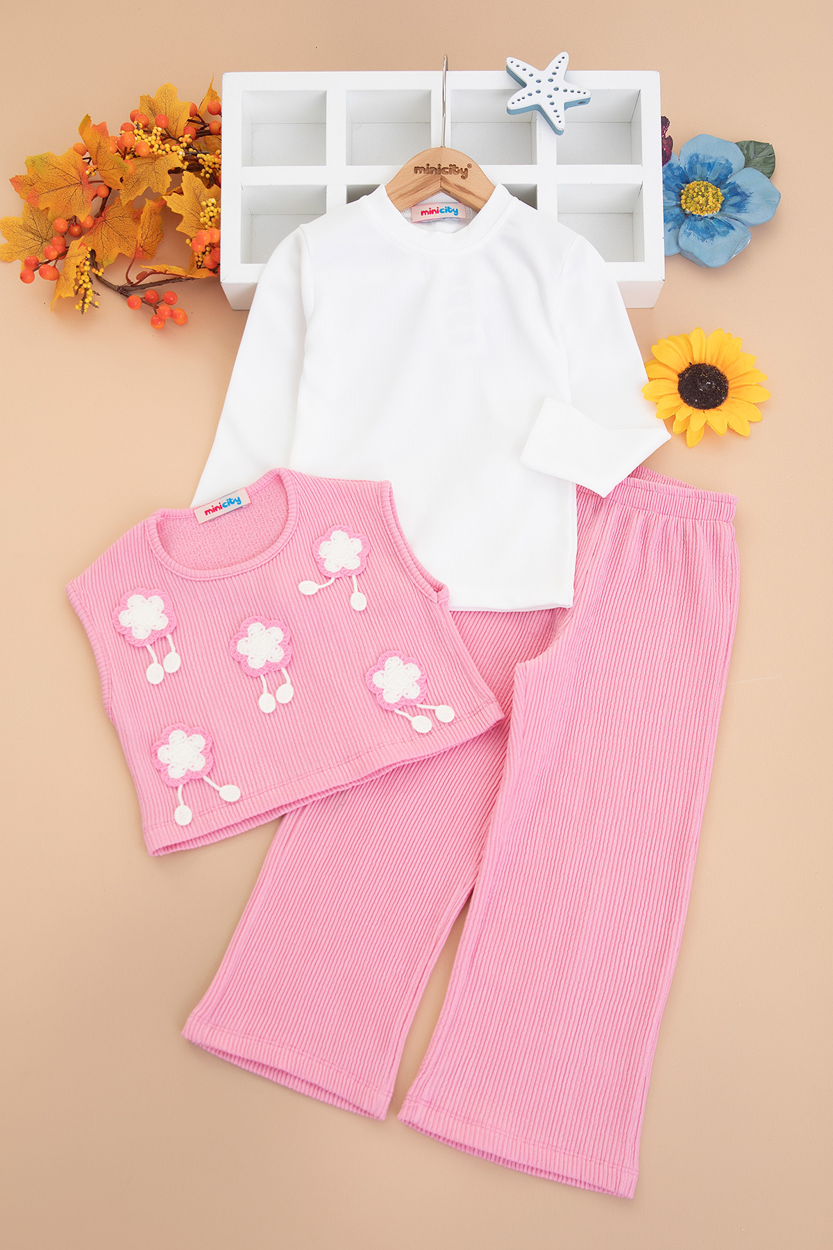Kız Çocuk Önü Çiçek Nakışlı Takım - 5134 (3-10 Yaş)