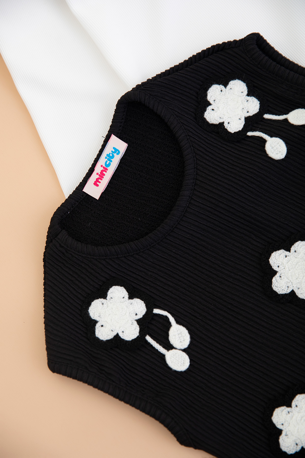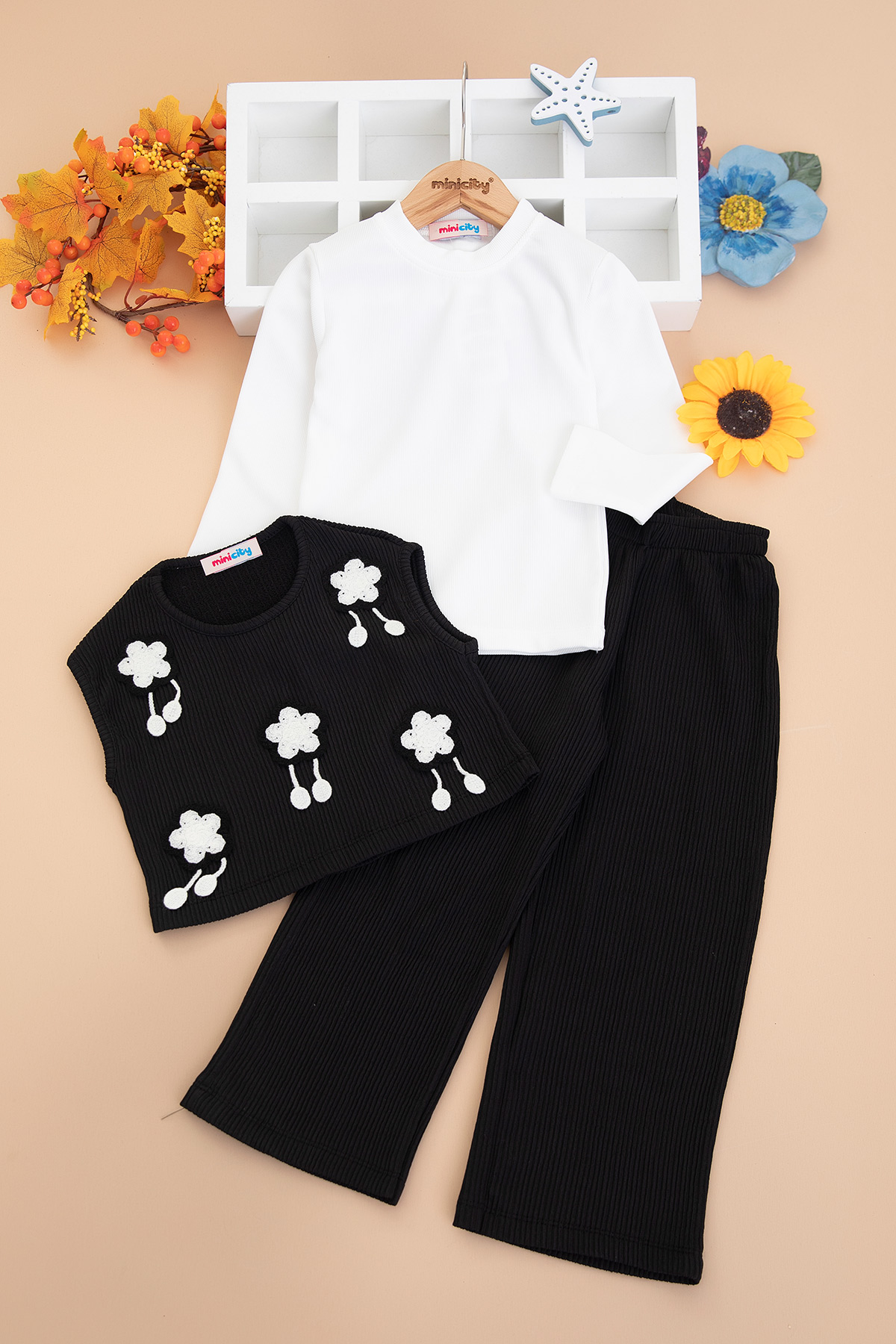 Kız Çocuk Önü Çiçek Nakışlı Takım - 5134 (3-10 Yaş)