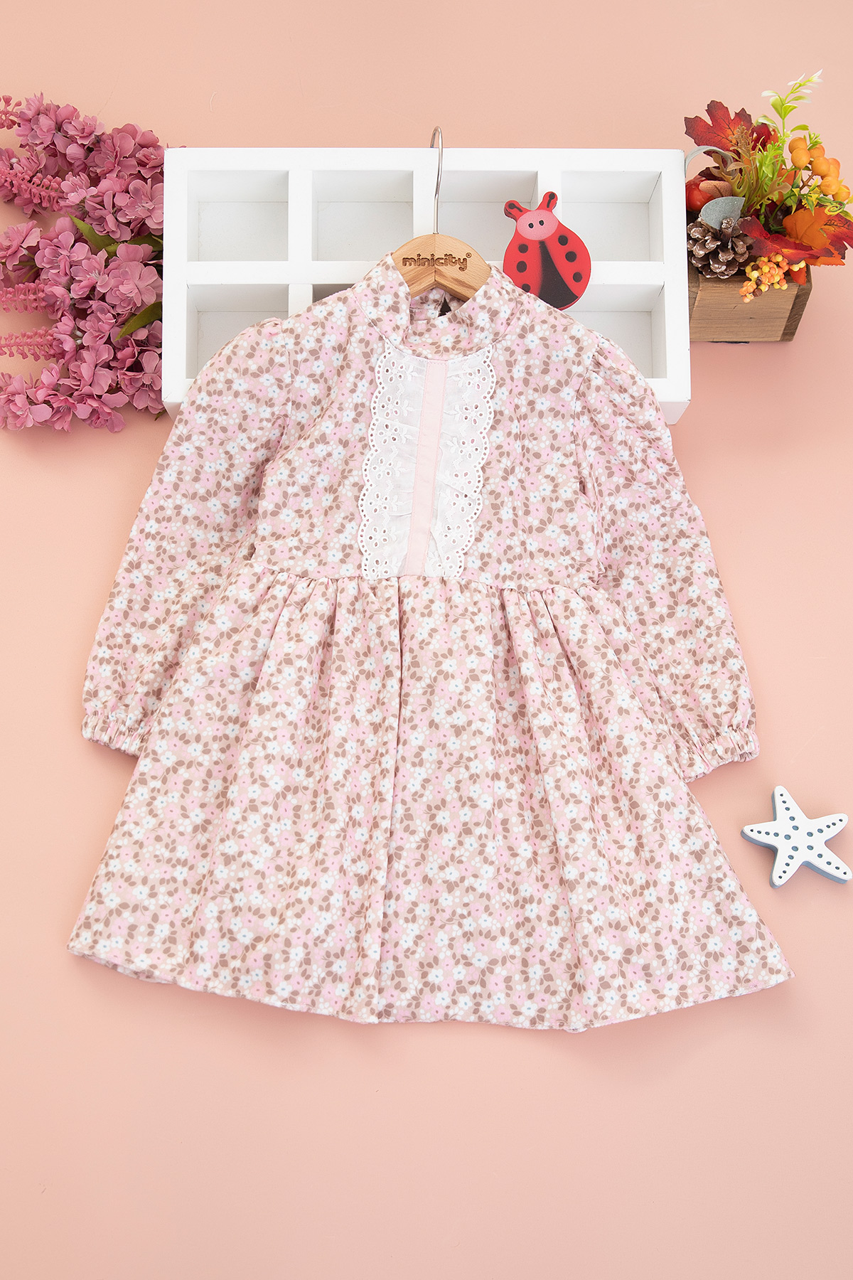 Kız Çocuk Önü Dantelli Fitilli Elbise - 4989 (7-11 Yaş)
