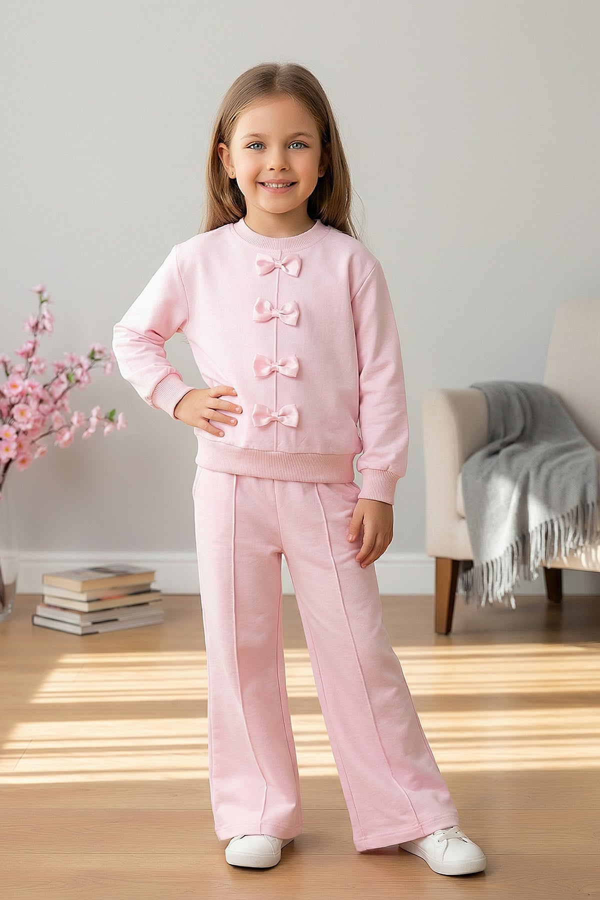 Kız Çocuk Önü Fiyonklu Takım - 525114 (3-7 Yaş)