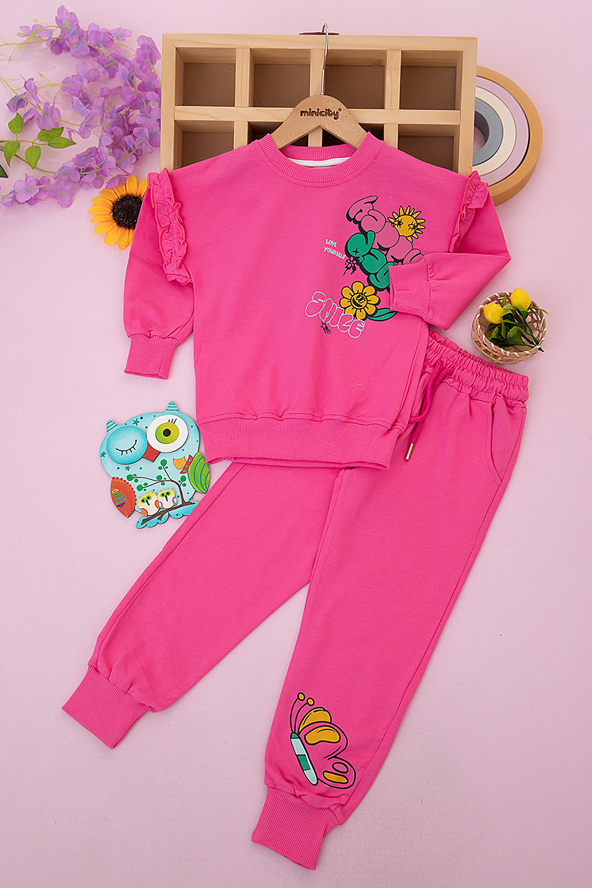 Kız Çocuk Önü Happy Days Baskılı Takım - 402 (3-6 Yaş)