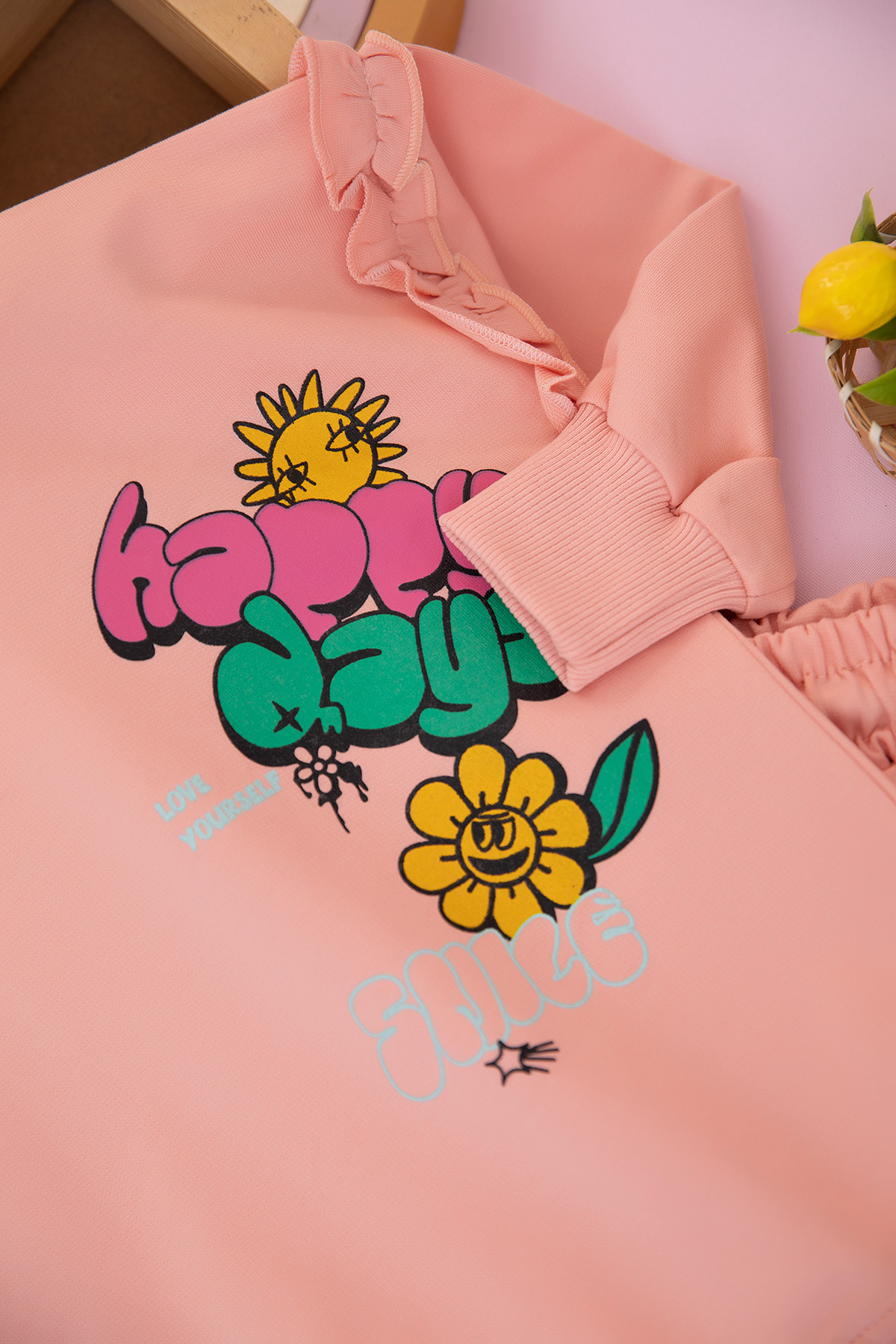 Kız Çocuk Önü Happy Days Baskılı Takım - 402 (7-10 Yaş)