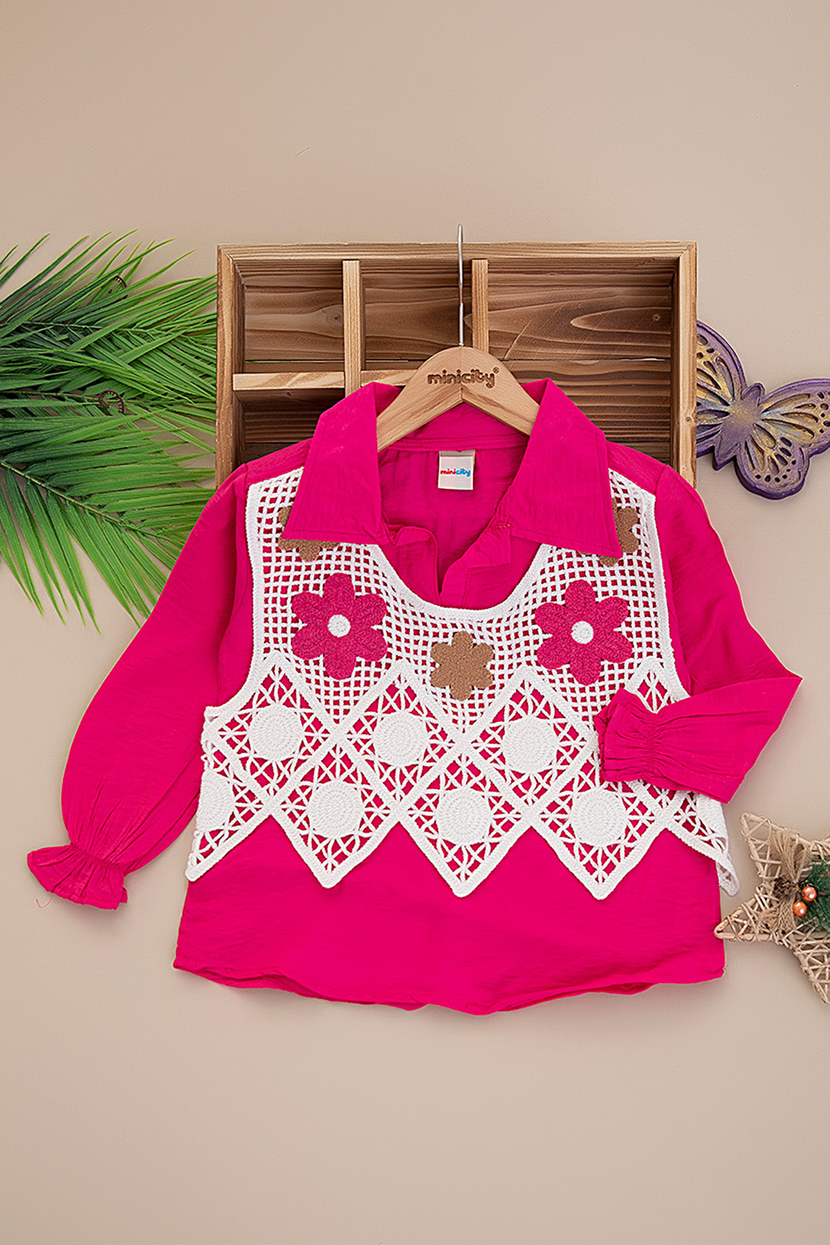 Kız Çocuk Önü Süzene Nakışlı Gömlek - 12022 (5-9 Yaş)