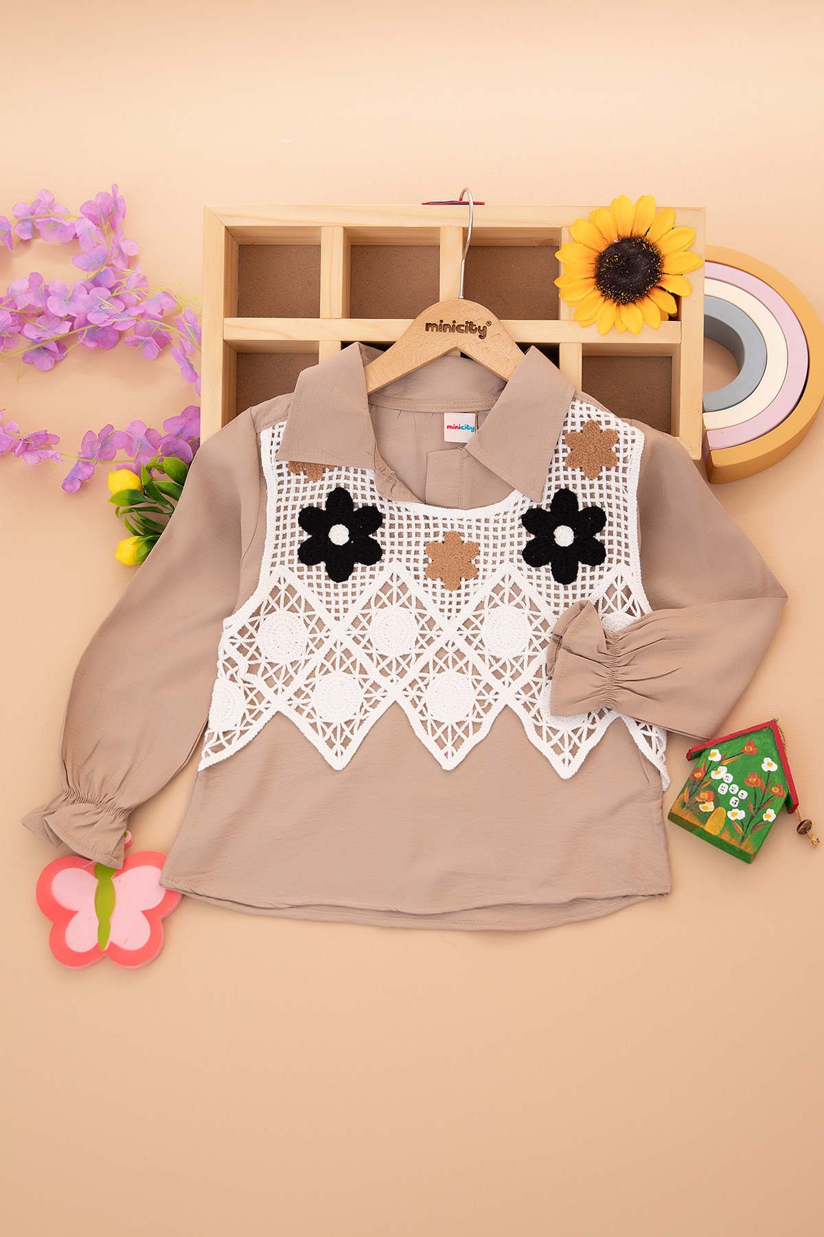 Kız Çocuk Önü Süzene Nakışlı Gömlek - 12022 (5-9 Yaş)