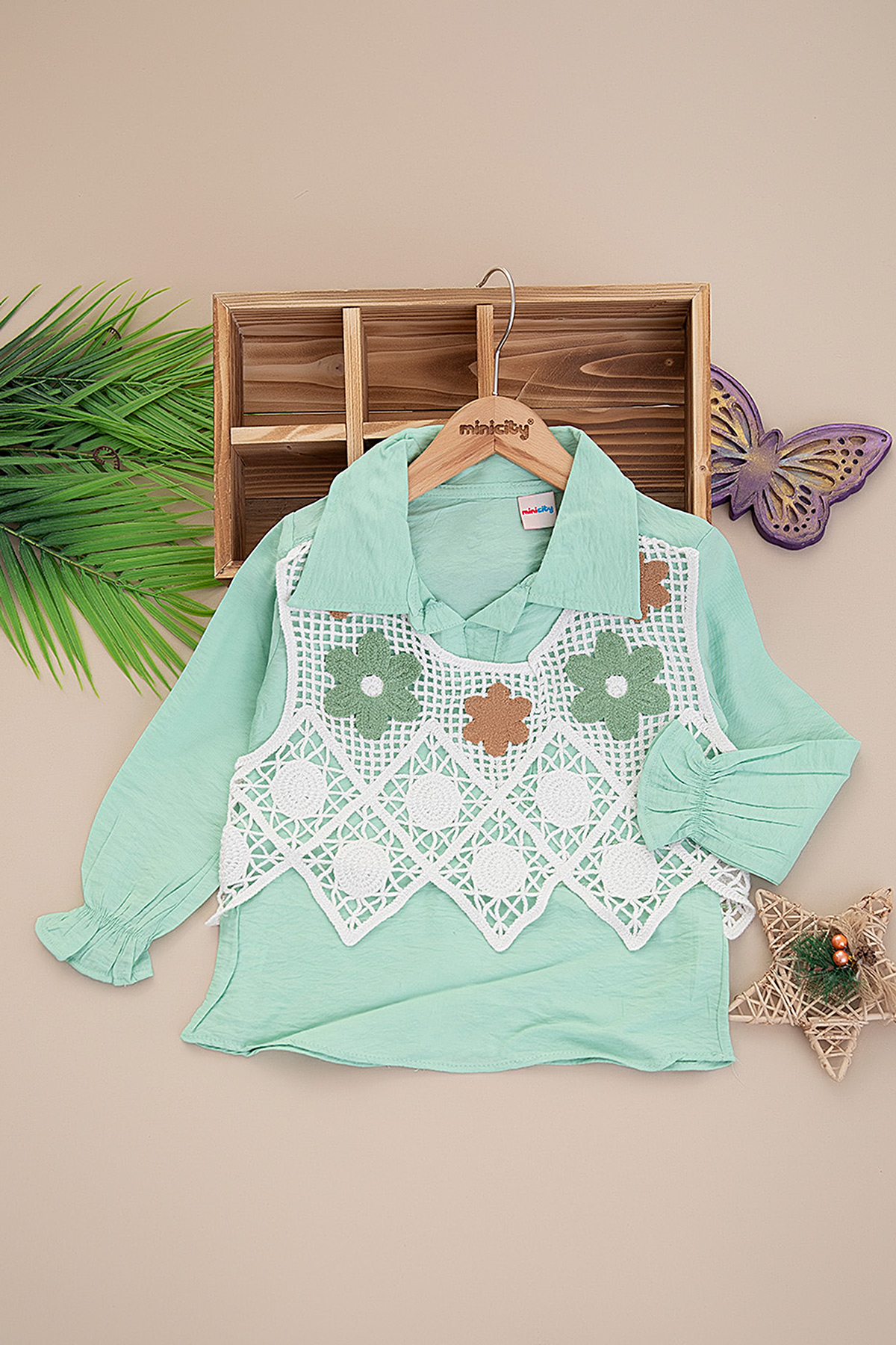 Kız Çocuk Önü Süzene Nakışlı Gömlek - 12022 (5-9 Yaş)